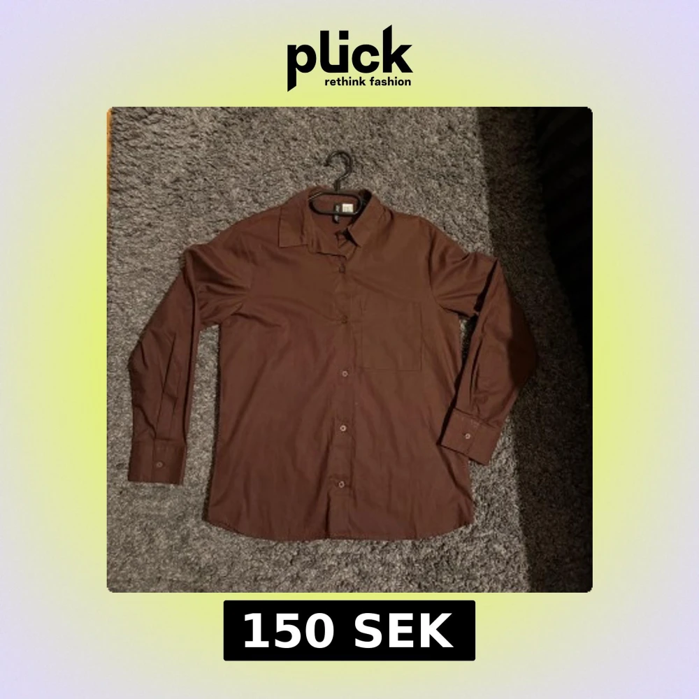 Snygg brun skjorta från H&M i bomull med klassisk krage, knäppning framtill och en bröstficka. Skjortan har lång ärm med manschett och en rak passform som funkar till många olika stilar.