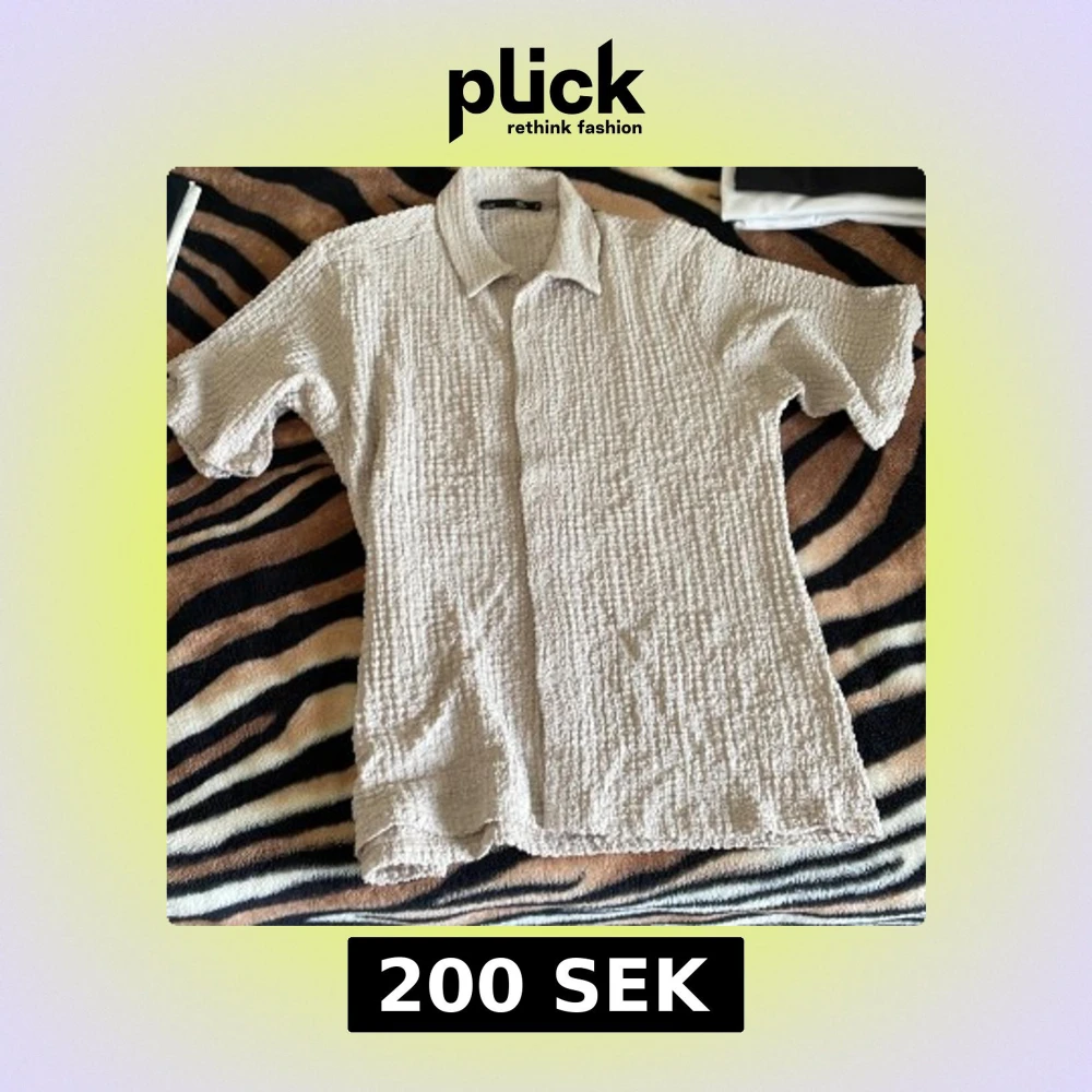 Säljer en beige skjorta från H&M med kort ärm och coolt strukturerat tyg. Skjortan har klassisk krage och knäppning framtill. Perfekt för dig som gillar en avslappnad men ändå stilren look.