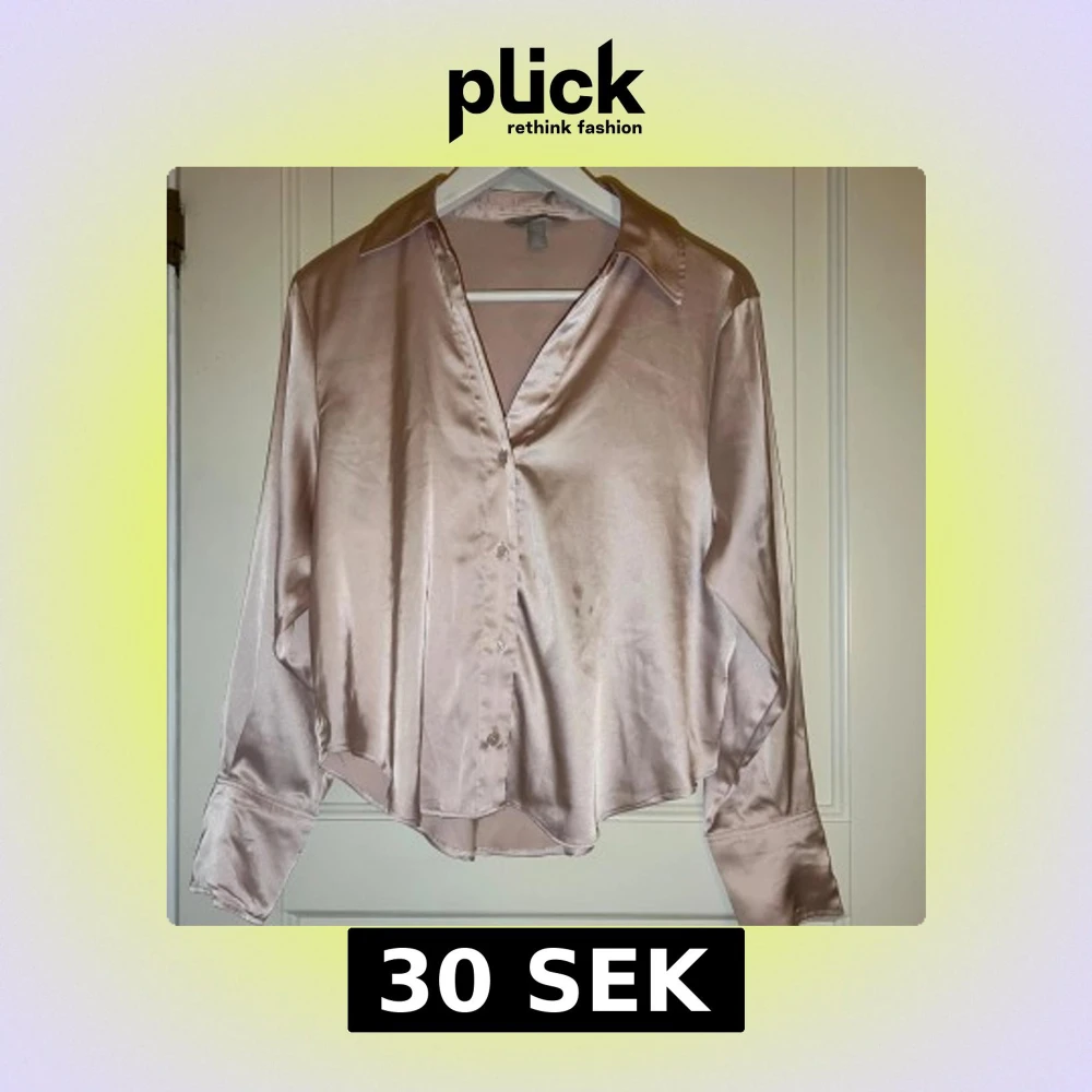 Snygg champagnefärgad skjorta i satin med klassisk krage och knappar framtill. Skjortan har långa ärmar med breda manschetter och en lätt glansig finish som ger en lyxig känsla. Perfekt för dig som vill sticka ut med en elegant look. Den finns fläckar på skjortan.