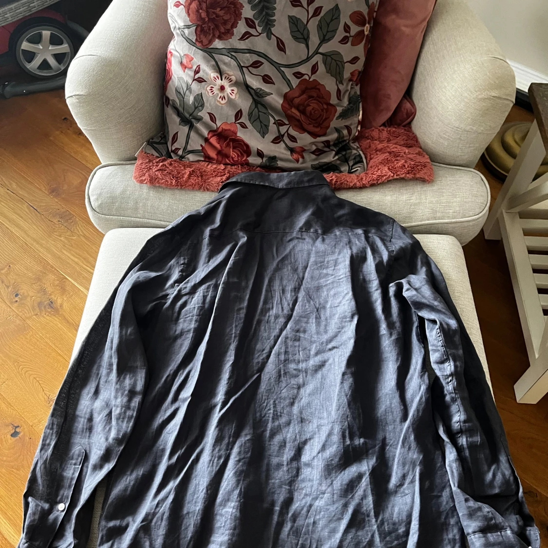 Snygg blå linne skjorta från H&M i regular fit. Skjortan har långa ärmar och knappar framtill. Perfekt för en stilren look.
