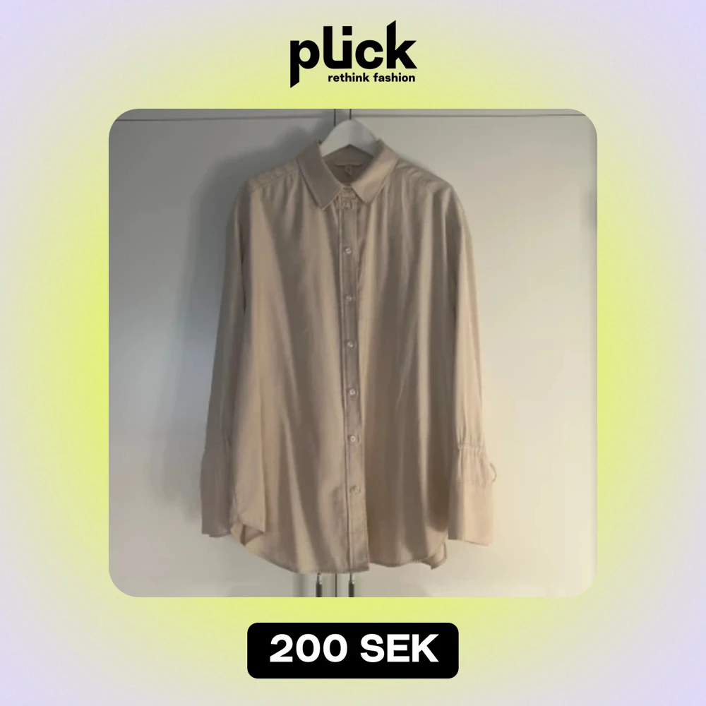 Säljer en jätte fin blus från H&M Trend i strl M. Off white. Kvalitet viskos/polyester. Oversized modell. Beige. Snygg knyt detalj vid ärmarna. Använd 2ggr. Nypris 499:-