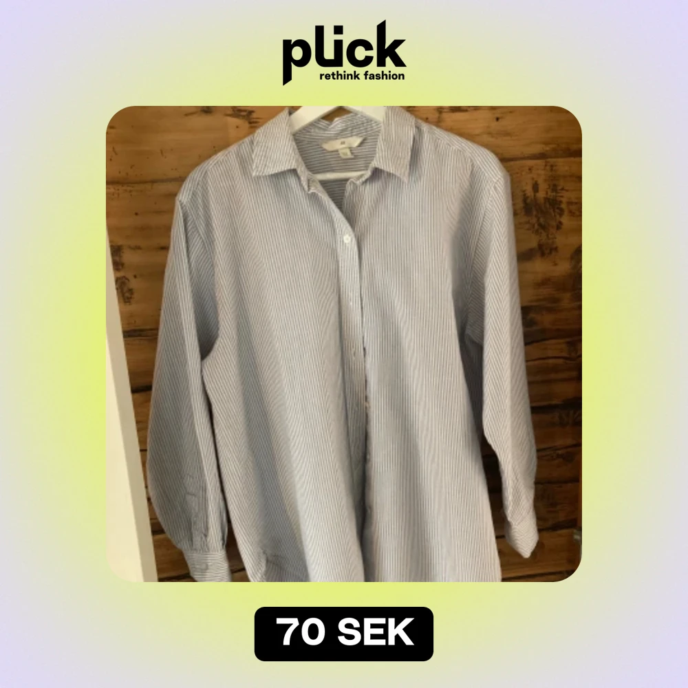 Blå/vitrandig over size-skjorta från HM. Stl S. 100% bomull.