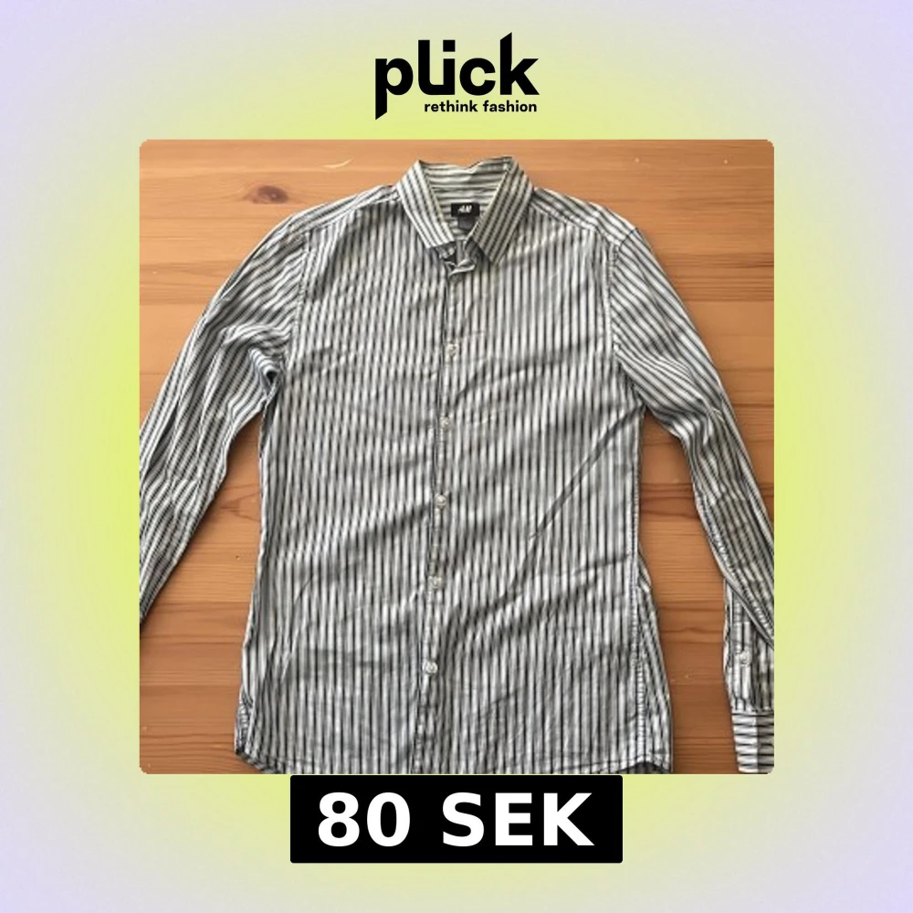 Snygg skjorta från H&M i storlek S med svartvita ränder. Klassisk krage, långa ärmar och knäppning framtill. Skjortan är i tunn bomull, perfekt för en clean och stilren look. Passar dig som gillar enkel men trendig stil.