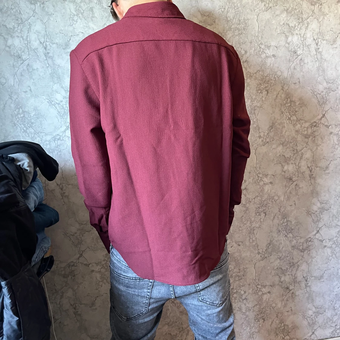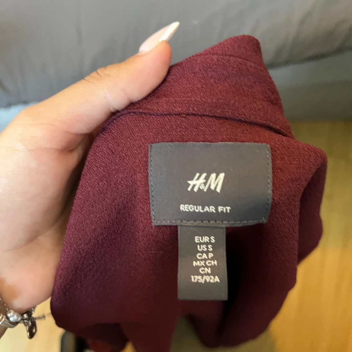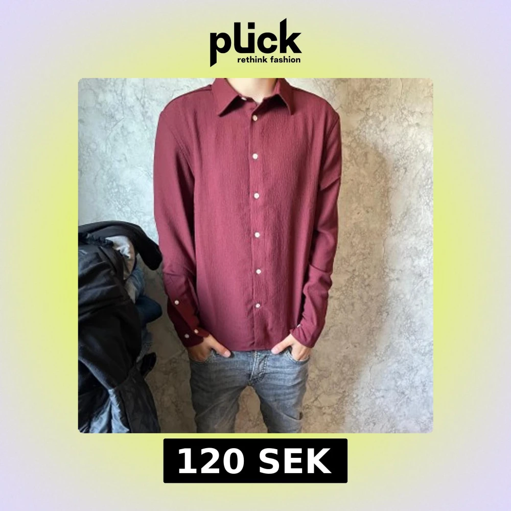 Vinröd skjorta från H&M i regular fit med klassisk krage och vita knappar framtill. Skjortan har lång ärm och en stilren, enkel design som passar till jeans eller chinos. Materialet känns lätt och har en diskret struktur för en snygg look. Pris ej hugget i sten vid snabb affär. hör av dig vid minsta fundering!