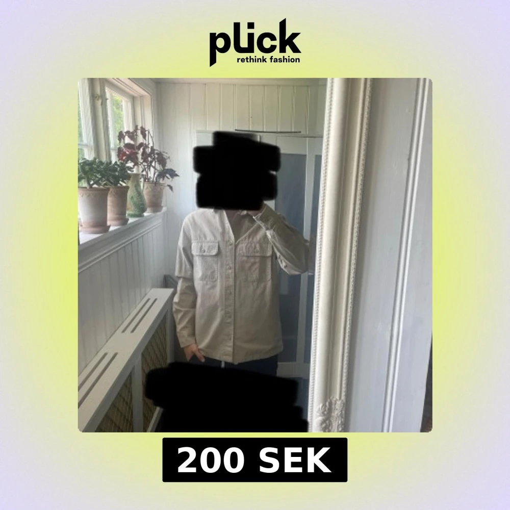 Säljer en stilren beige overshirt från H&M med två bröstfickor och knappar framtill. Skjortan har klassisk krage och lång ärm, perfekt att bära öppen eller stängd över en t-shirt.
