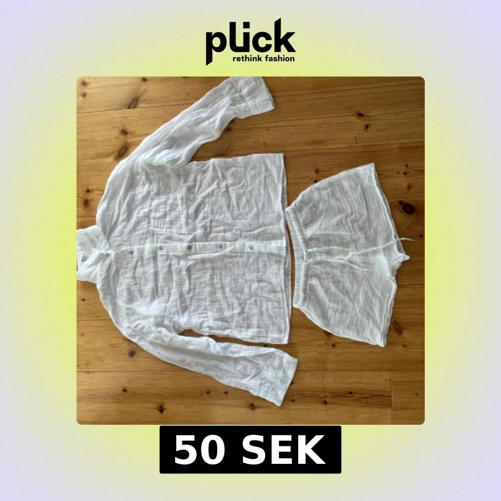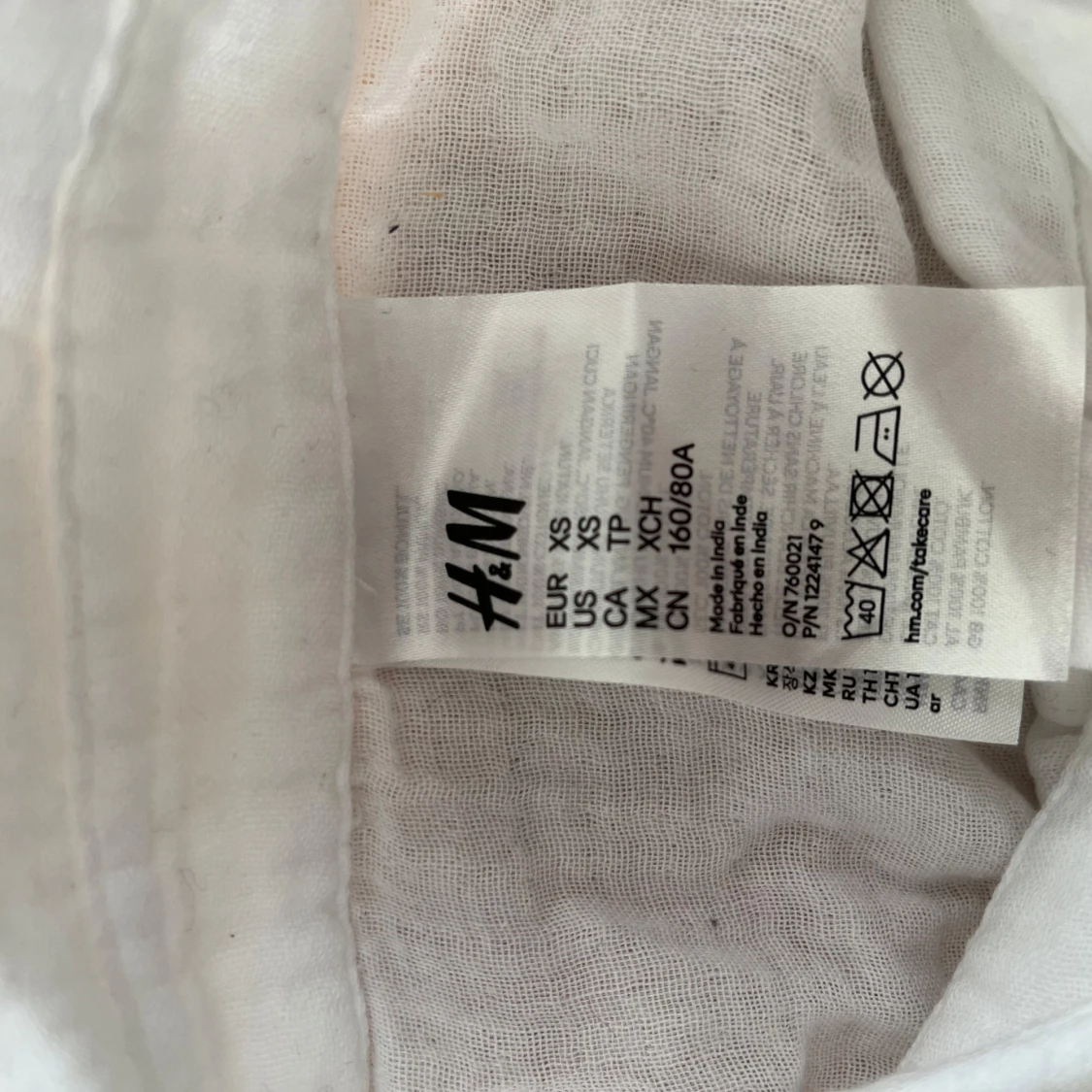 Vit, luftig skjorta i linne från H&M med lång ärm, bröstficka och knappar framtill. Perfekt för varma dagar med sin avslappnade passform och svala känsla. Säljes i set med matchande shorts.