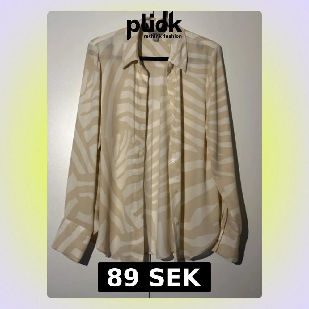 Långärmad skjorta med ett zebramönster. Skjortan har en krage och knappar framtill. Observera att det finns en liten defekt på skjortan.