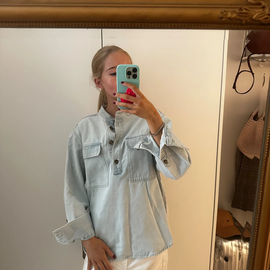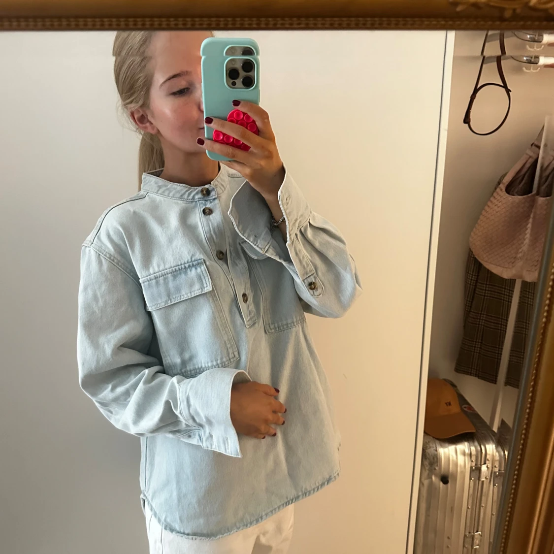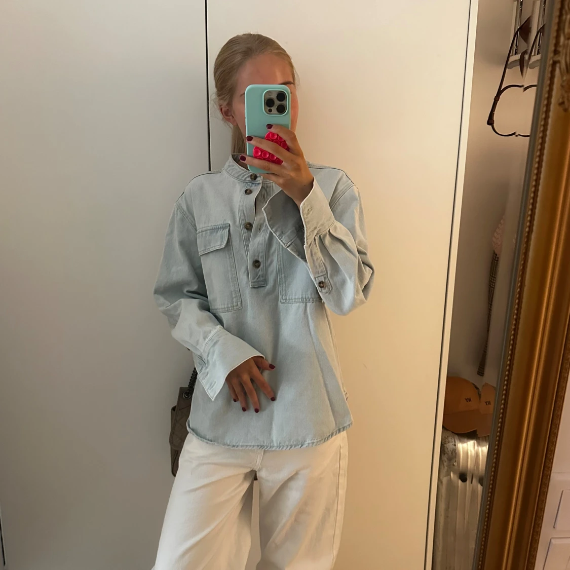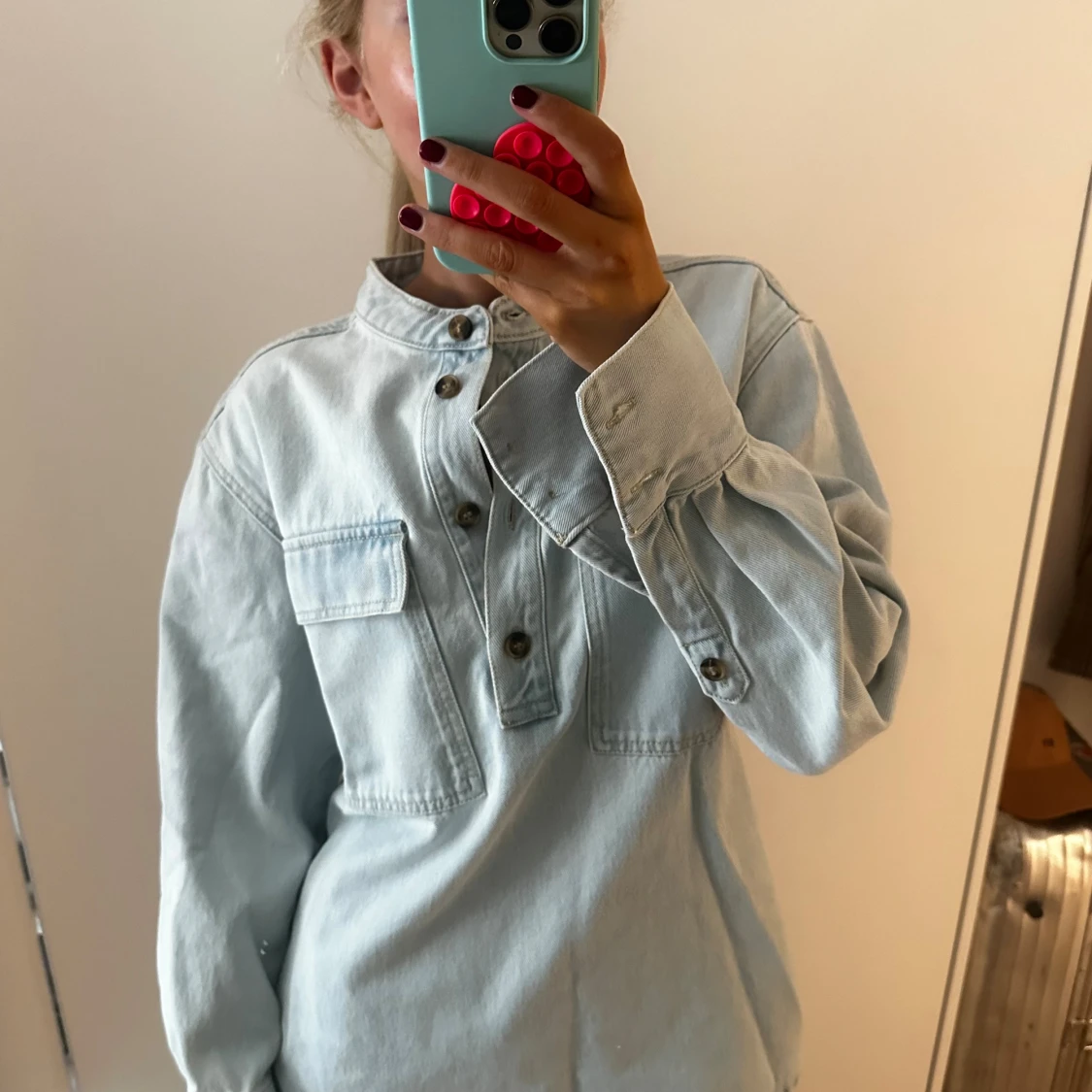 Ljusblå skjorta i denim med avslappnad passform. Perfekt för en chill och trendig look.