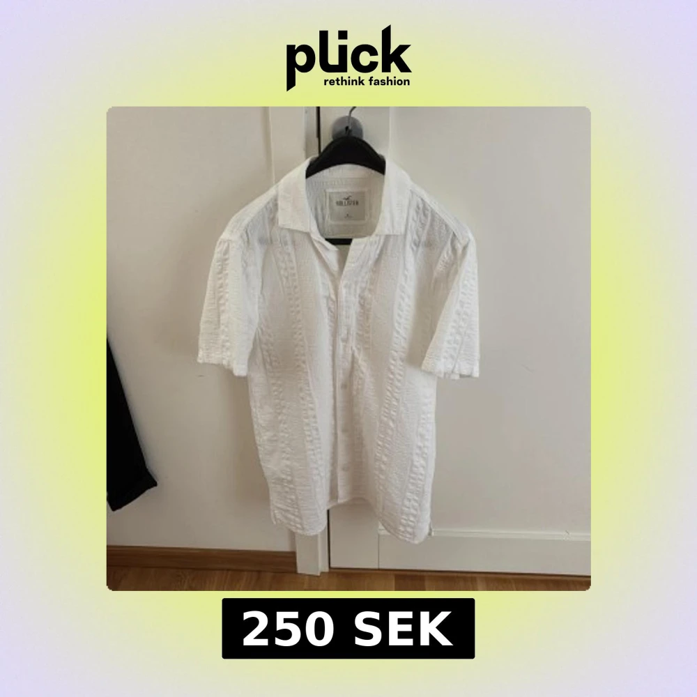 Säljer en vit skjorta från Hollister i storlek S. Skjortan har korta ärmar, klassisk krage och knäppning framtill. Materialet är strukturerat bomullstyg som ger en cool känsla och extra detalj. Perfekt för varma dagar när du vill ha en clean och fräsch look. Den är helt oanvänd.