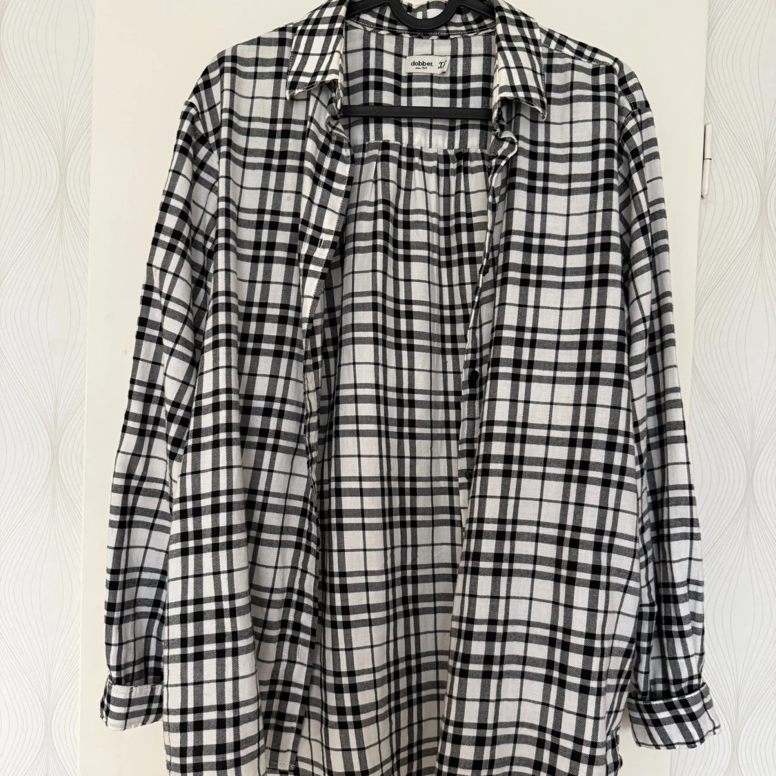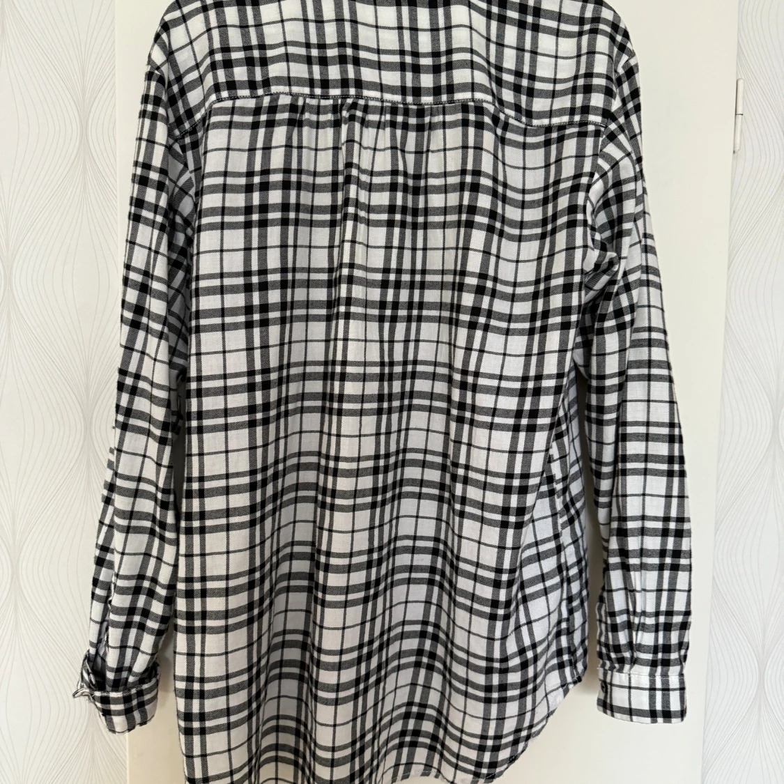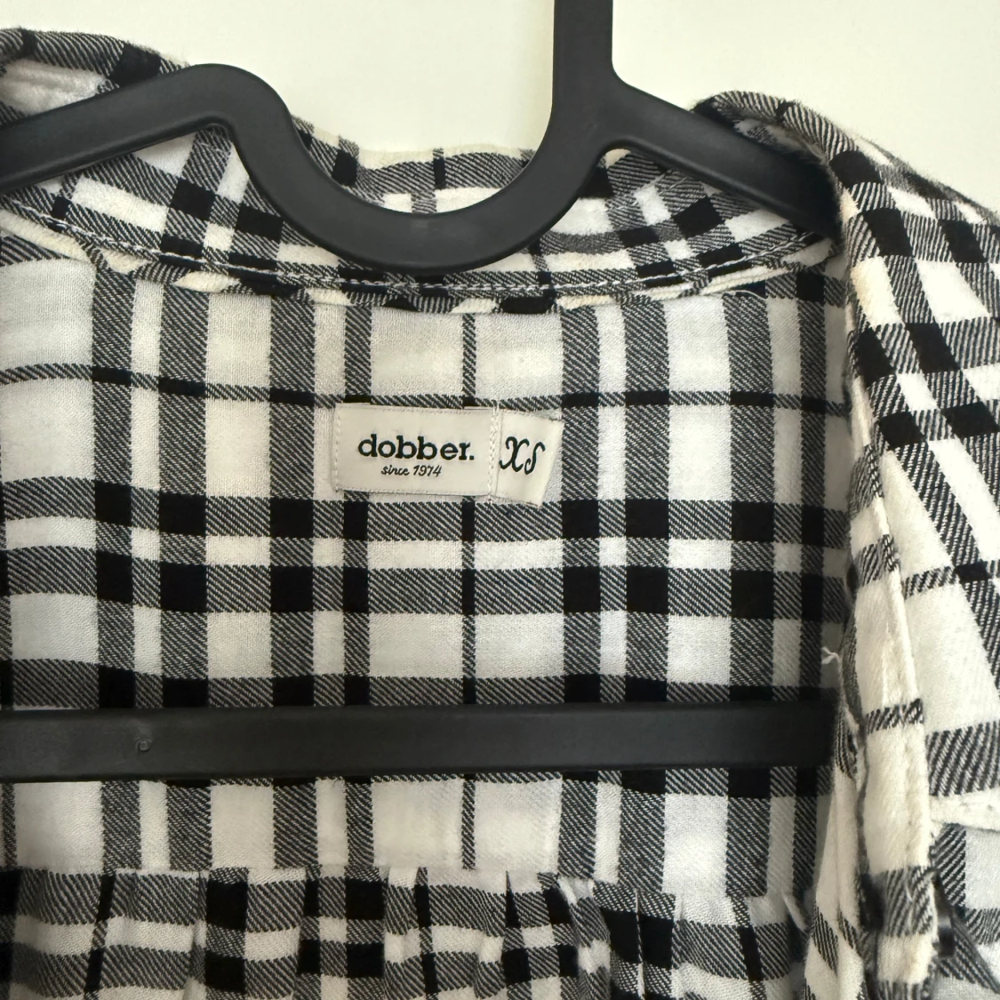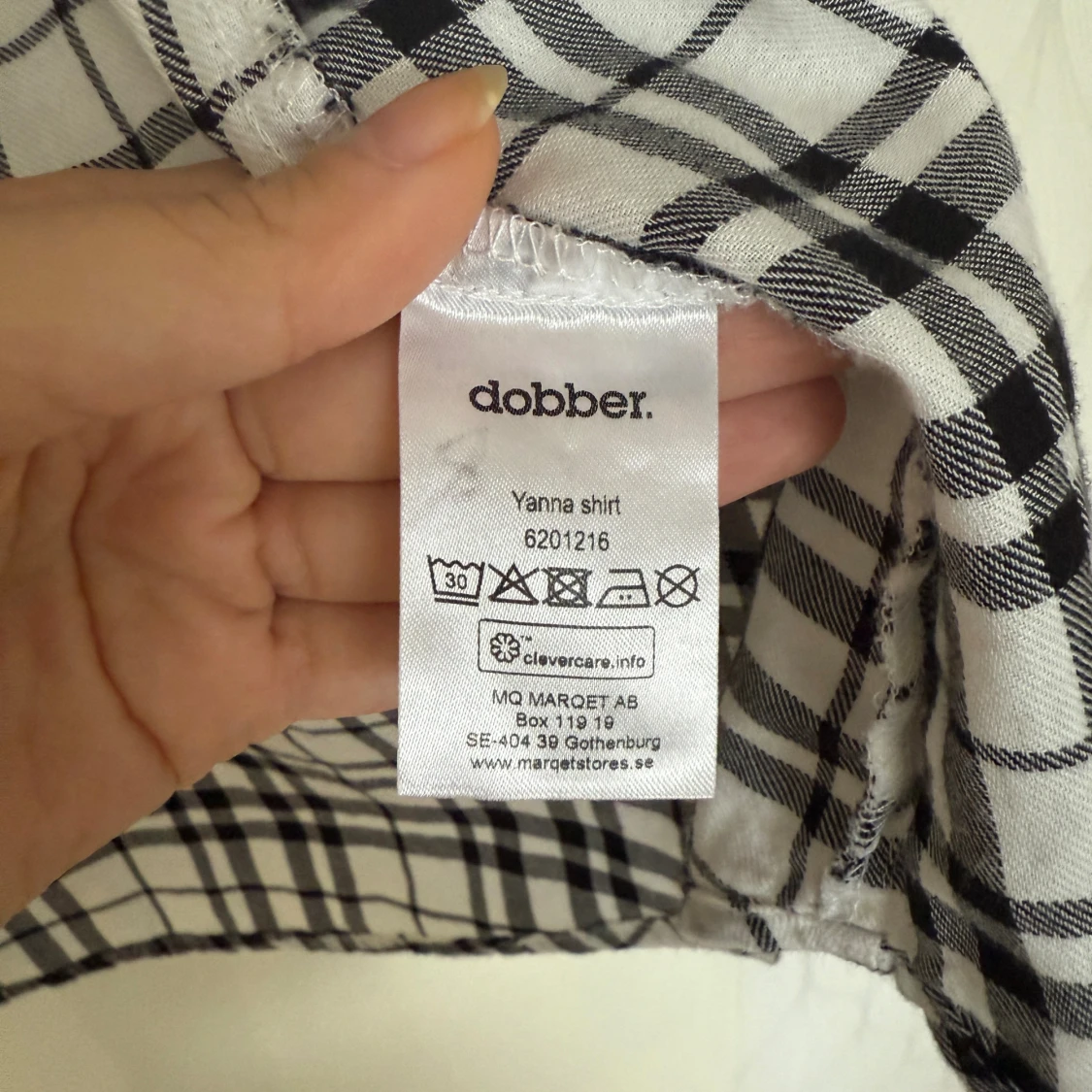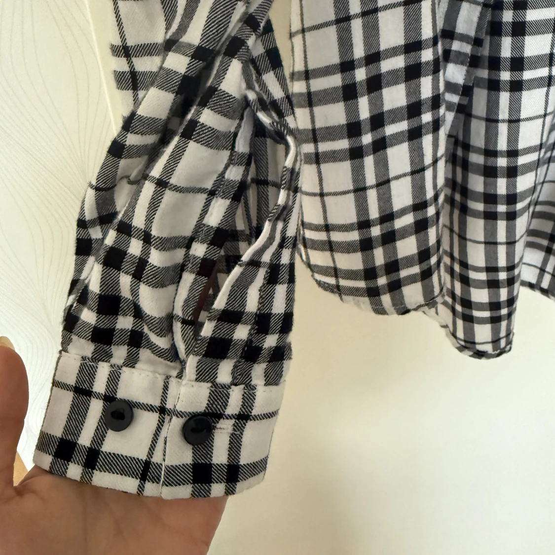 Snygg rutig skjorta från MQ i storlek XS. Skjortan är vit med svarta rutor, har klassisk krage och långa ärmar med knappar vid manschetten. Mjuk bomullskänsla och loose fit för chill vibe. Perfekt att slänga över en t-shirt.