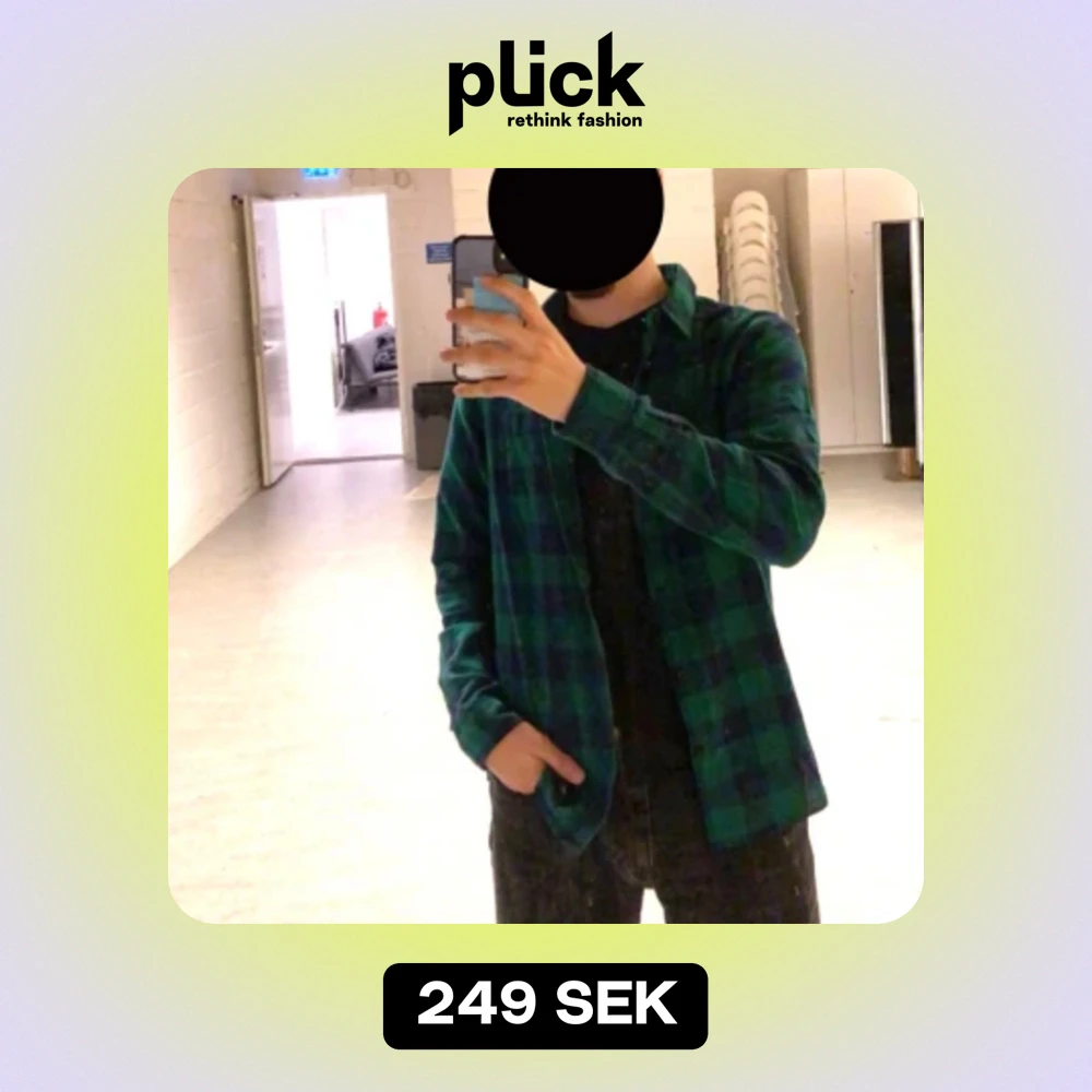 Säljer en snygg grön och svart rutig skjorta med långa ärmar. Perfekt för en avslappnad stil, kanske över en t-shirt eller som den är. Skjortan har en klassisk krage och knappar hela vägen ner. Den är i bra skick och passar perfekt för sommar, vinter