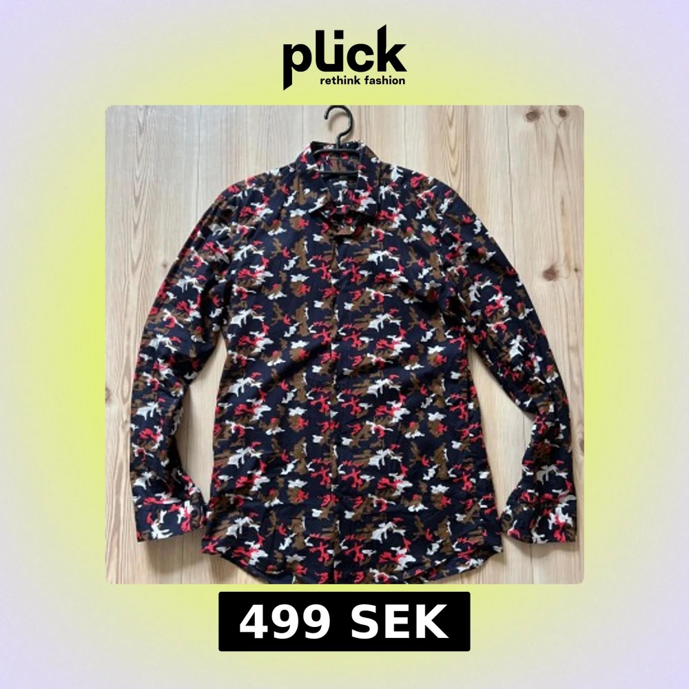 Snygg slim fit skjorta från Hugo Boss med färgstarkt camouflagemönster i marinblått, rött, vitt och brunt. Skjortan har långa ärmar, klassisk krage och knäppning framtill. Tillverkad i mjuk bomull med italienskt tyg. Perfekt för dig som vill sticka ut.