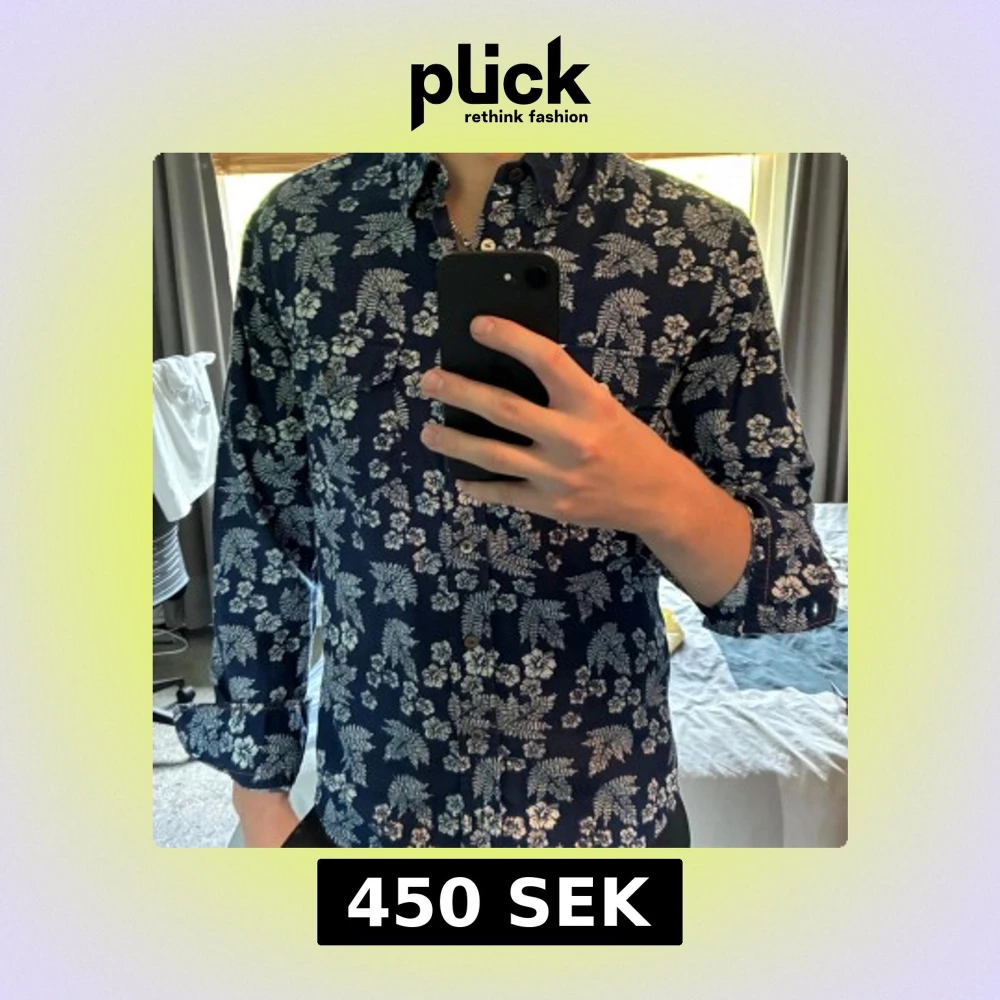 Hej, säljer en snygg blå skjorta från Hugo Boss med vitt blommigt mönster och två bröstfickor. Slim fit-modell med långa ärmar och klassisk krage. Perfekt för dig som vill sticka ut med en cool och somrig vibe. Skjortan är i mjuk bomull och har knäppning framtill. Hör av dig vid frågor eller funderingar!😁