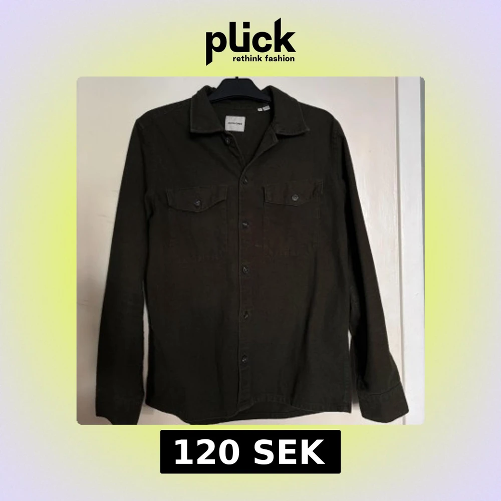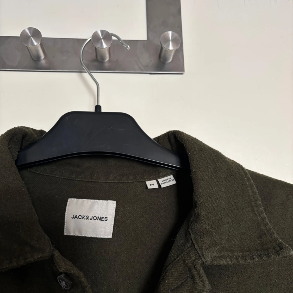 Säljer en mörkgrön overshirt från Jack & Jones med två bröstfickor och knäppning framtill. Skjortan har klassisk krage och långa ärmar, perfekt att bära som lager över en t-shirt.