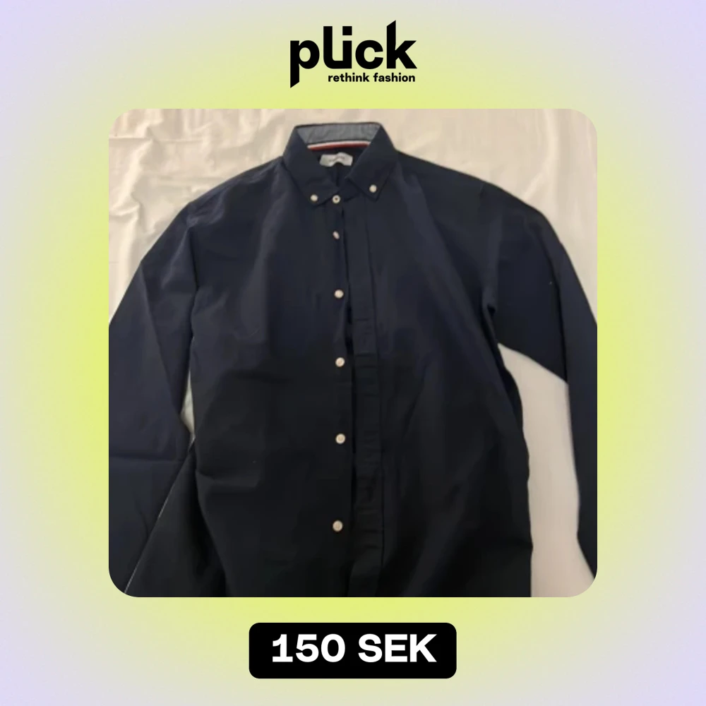 Säljer en snygg mörkblå skjorta från Jack & Jones. Skjortan har långa ärmar och knappar längs hela framsidan. Perfekt för både vardag och fest. Den är i bra skick och gjord av bomull vilket gör den bekväm att bära. Passar perfekt till höst och vår!