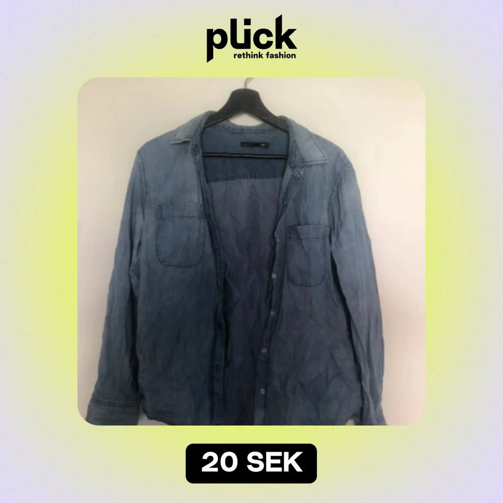 Säljer en jeans skjorta, den är i bra skick förutom att den har en liten fläck på ena armen som visas på sista bilden🫶