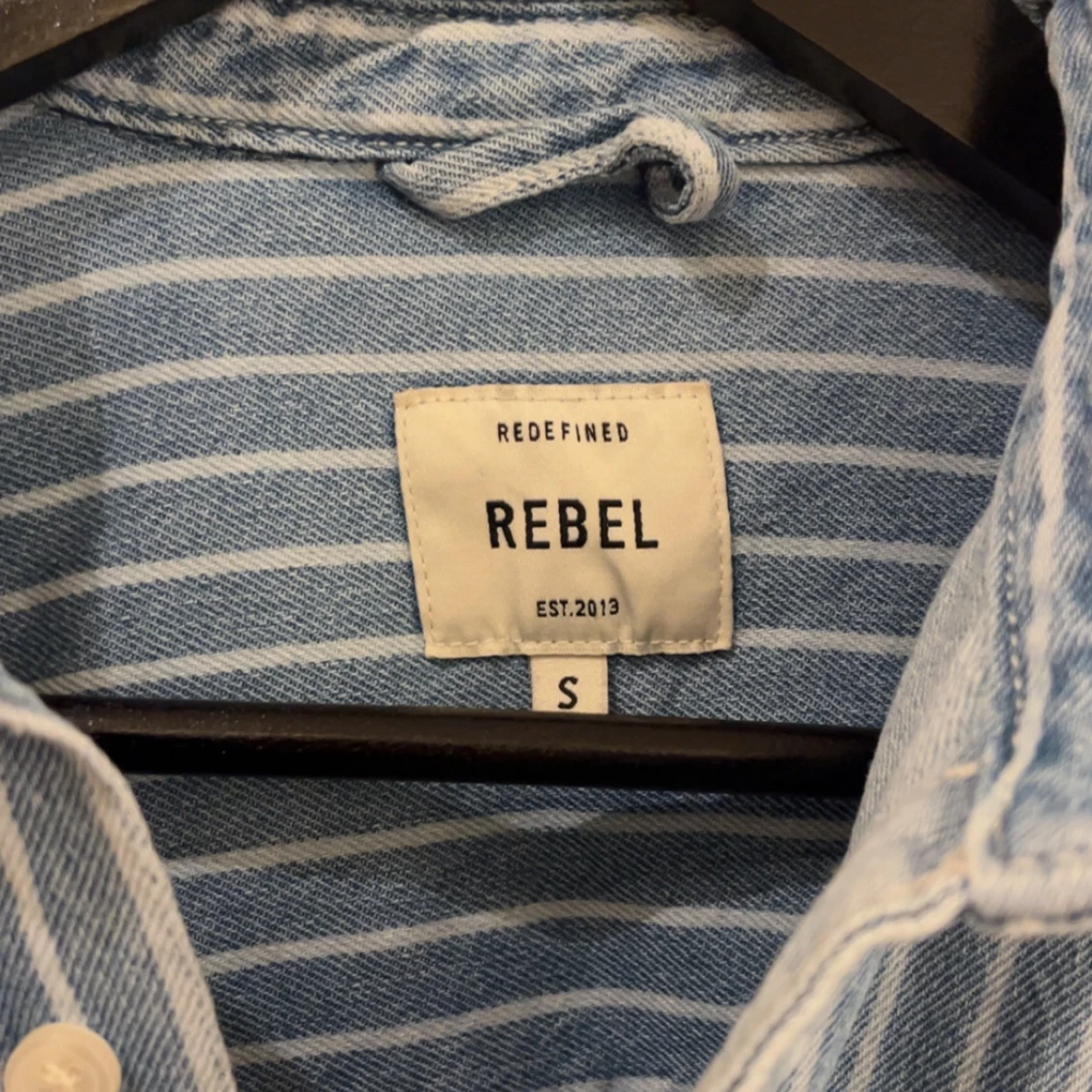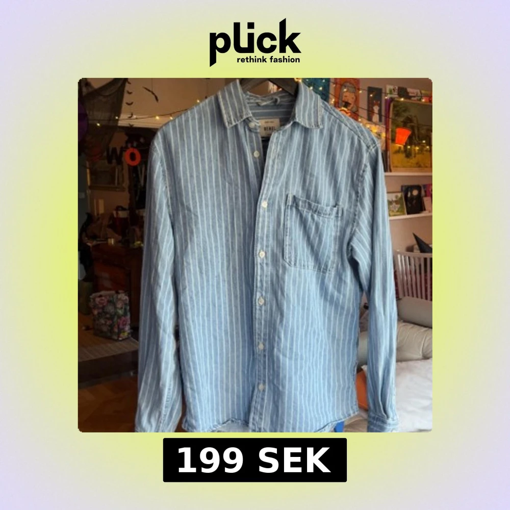 Säljer en ljusblå jeansskjorta från Redefined Rebel i storlek S. Skjortan har vita vertikala ränder, klassisk krage, bröstficka och knäppning framtill. Perfekt för en avslappnad och cool stil. Skjortan är snygg och ett safe val på nästa bar häng utan att riskera allt för mycket. Skjortan är snygg men sticker ut ur mängden. Fångar människors uppmärksamhet och får ofta komplimanger. Nypris 579. Använd 2 gånger, beställde fel storlek tyvärr.