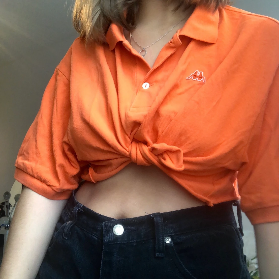 Croppad skjorta från märket Kappa som är köpt second hand! 🧡 Storlek Xl men väldigt kort så passar nog bäst på mindre storlekar🧡