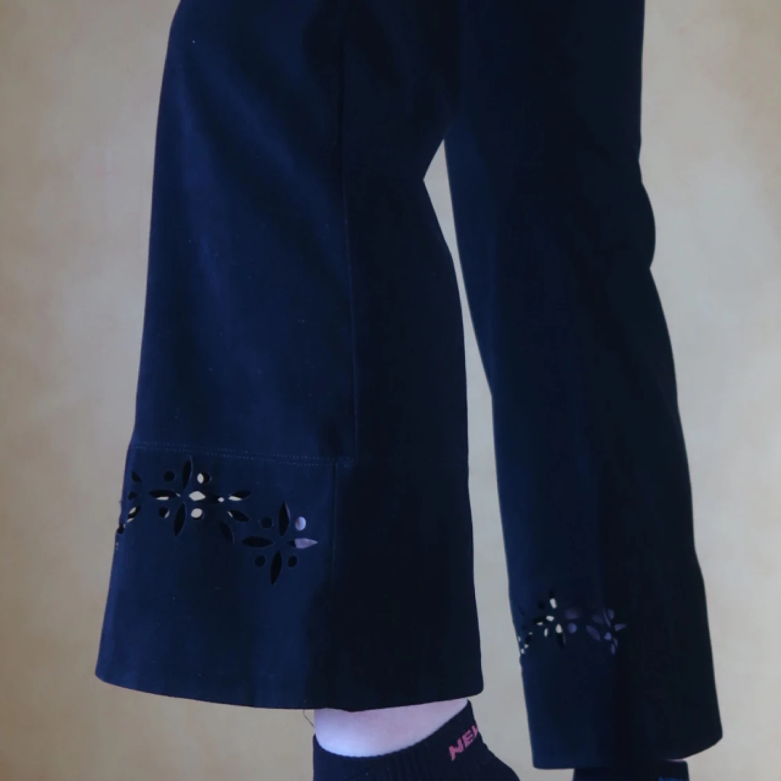Supersöta byxor med utskurna blommor längst ned! Köpta second hand och inte använda mer än ett par gånger✨ Köparen står för frakten!