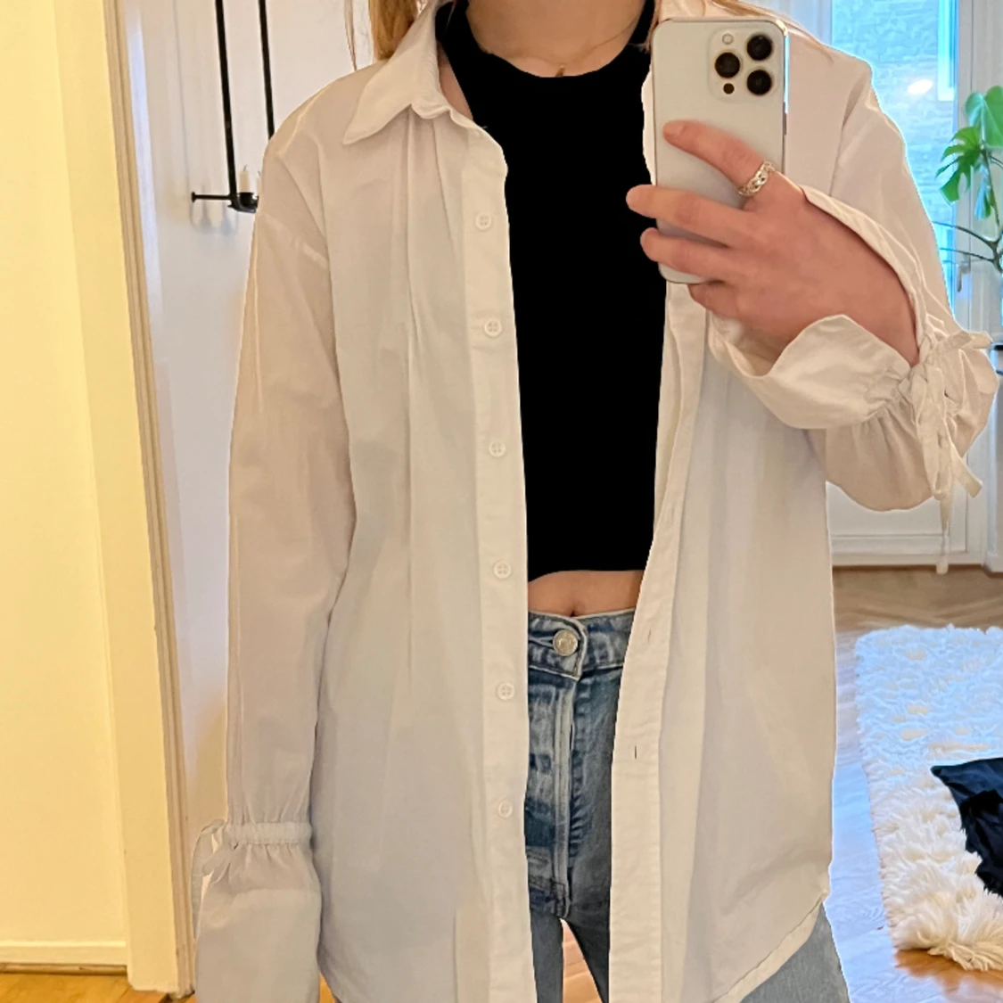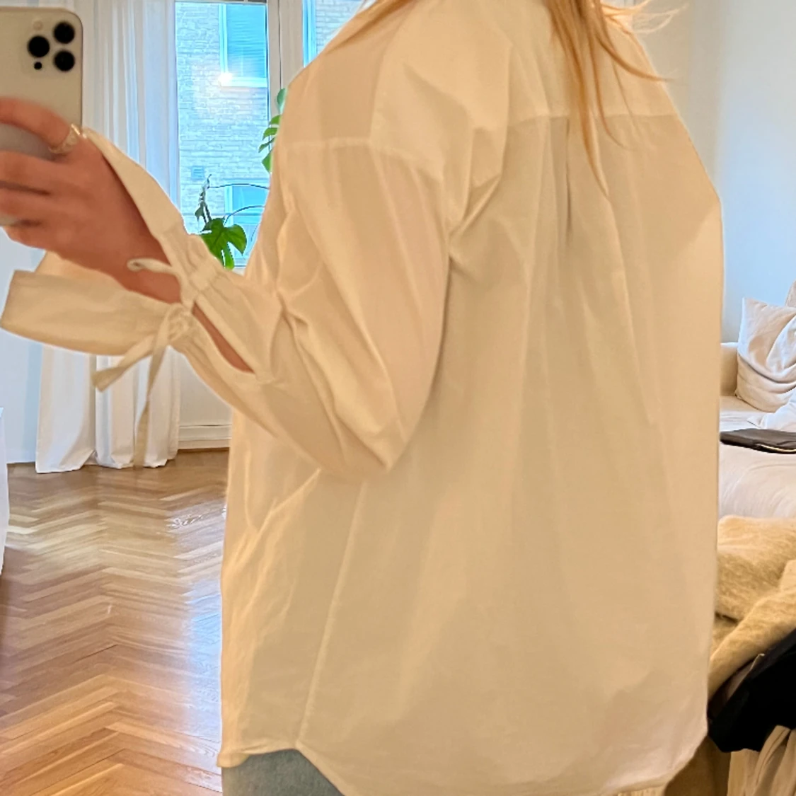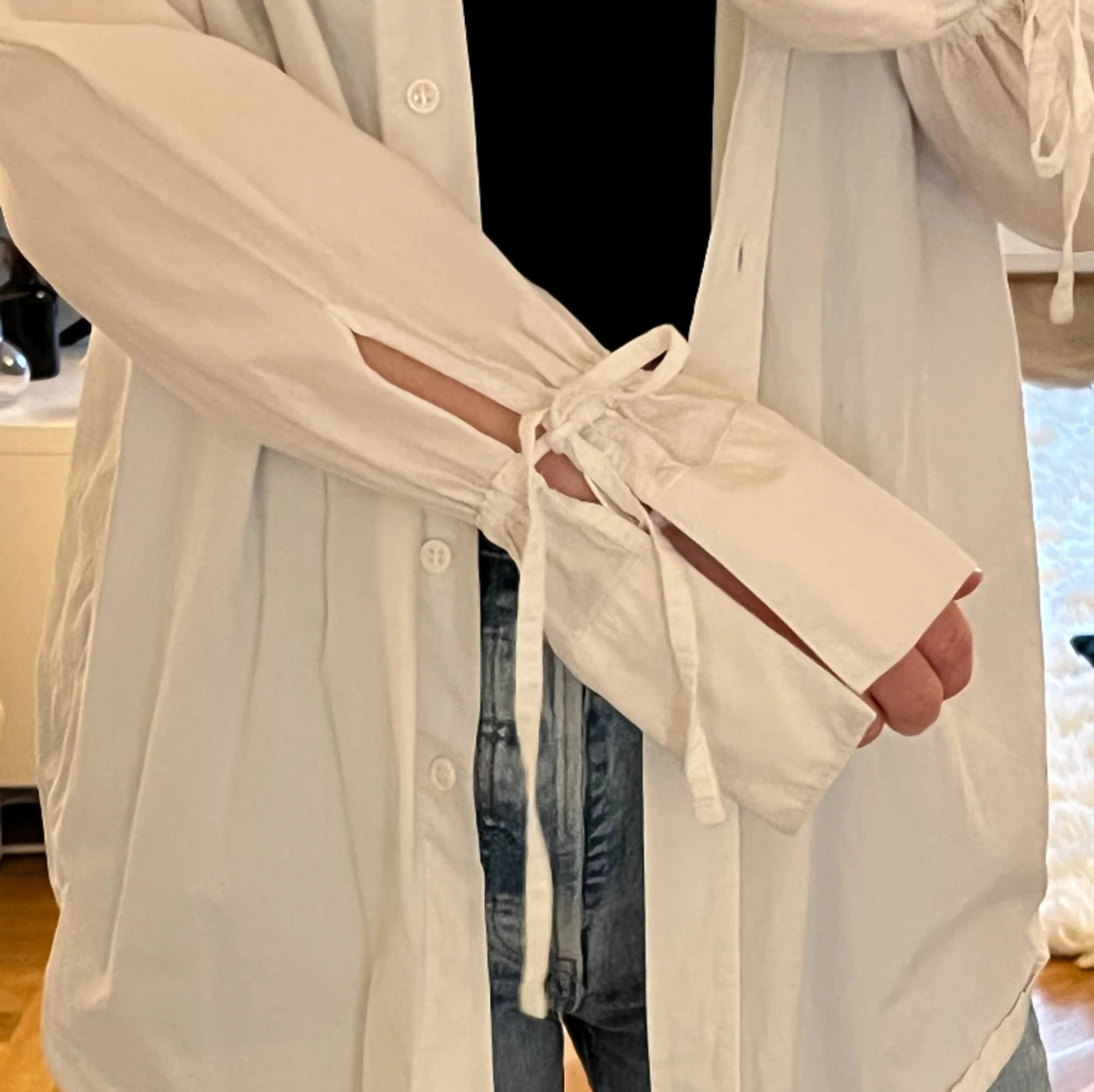 Vit oversized skjorta från NA-KD med knytdetaljer på ärmarna. Storlek XXS. 75:- ex frakt.