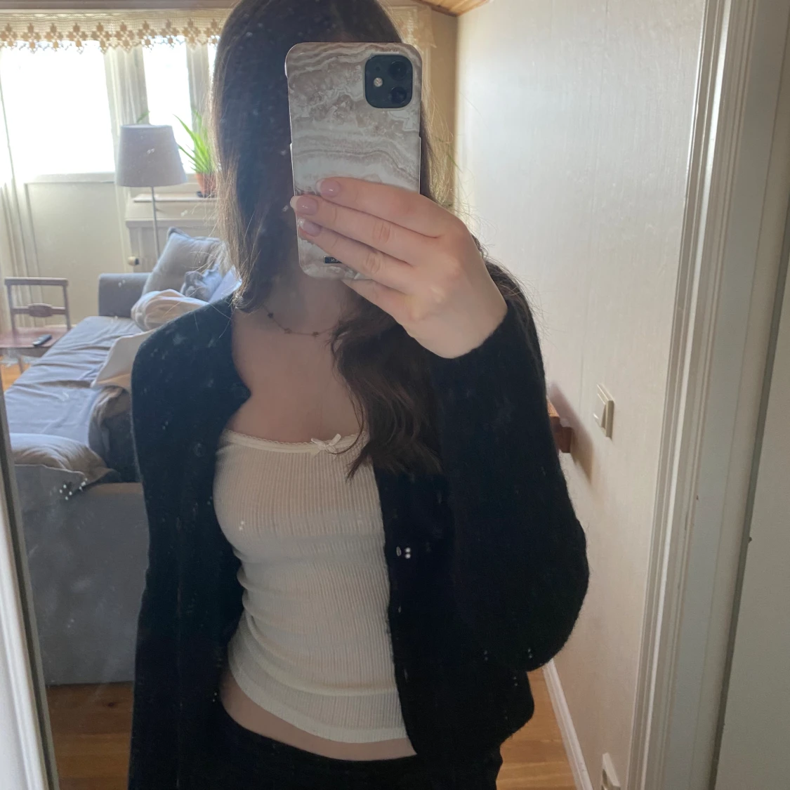 Svart kofta som aldrig kommit till användning. Den är i strl S och sitter super fint på🫶🏻Eftersom koftan är oanvänd så är den också i nyskick🙌🏻Skriv vid frågor eller egna bilder då alla är lånade. (Köpt för 399, pris kan diskuteras)