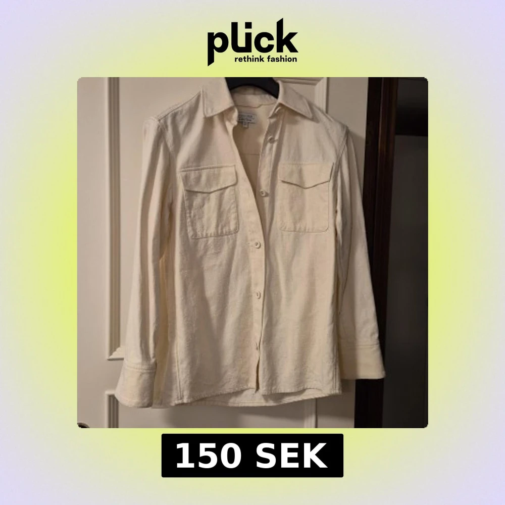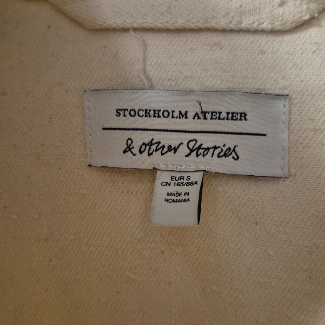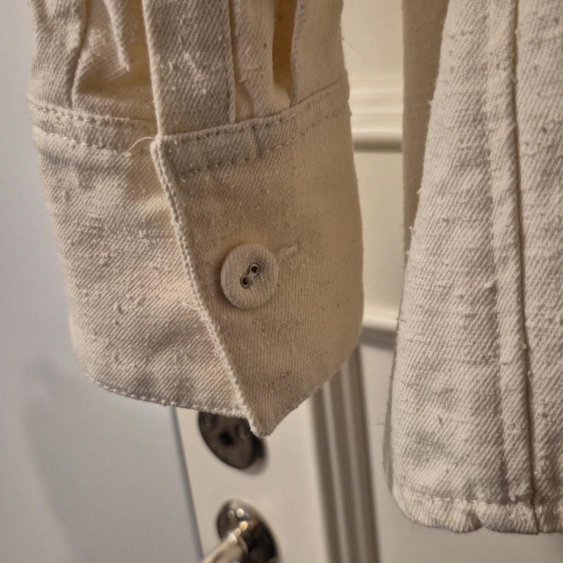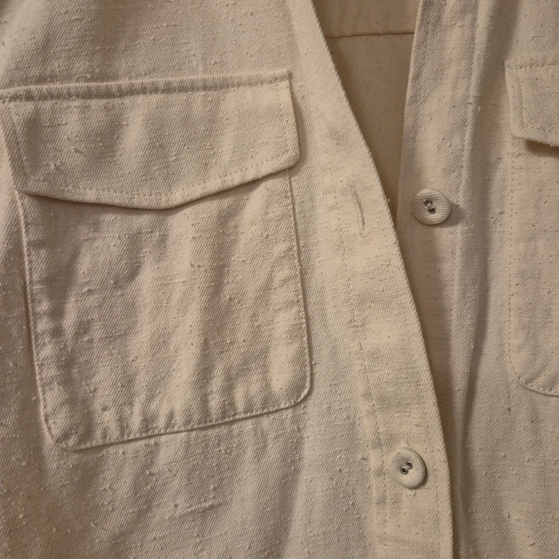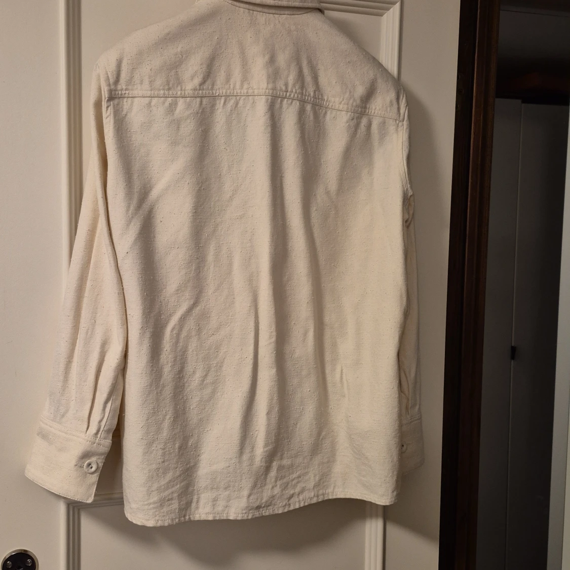 Krämvit overshirt från & Other Stories med två stora bröstfickor och knappar framtill. Skjortan är tillverkad i ett strukturerat bomullstyg med siden och linne och har klassisk krage samt långa ärmar med manschett. Perfekt för lager-på-lager och stilren look.