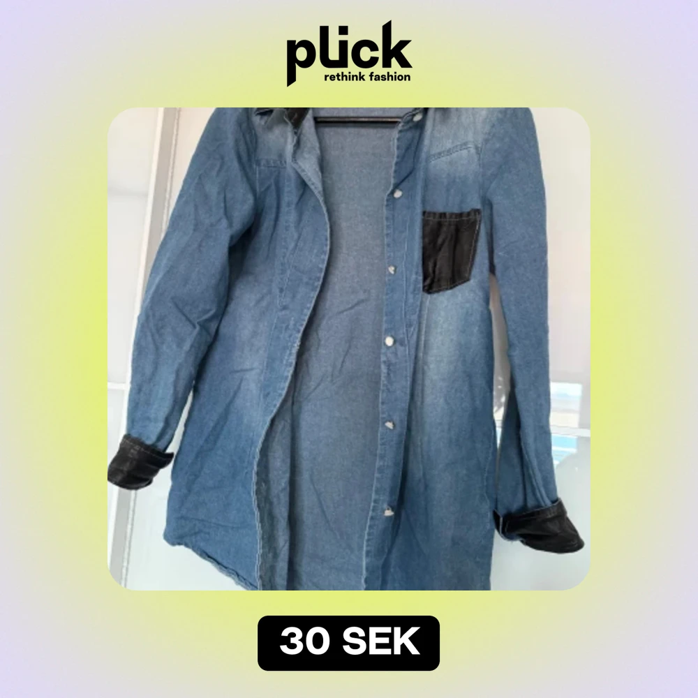 Säljer en cool jeansskjorta från Tingya i storlek L. Uppskattar mer som S/M. Skjortan har en unik design med svarta läderdetaljer på fickan och ärmsluten. Perfekt för en avslappnad stil eller en utekväll. Den har knappar framtill.