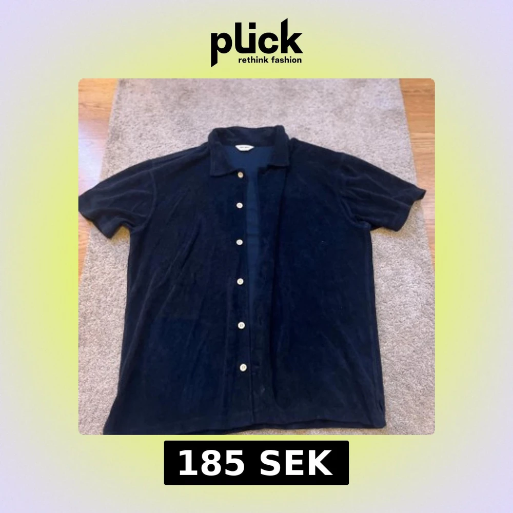Säljer en stilren mörkblå frottéskjorta från East West. Skjortan har korta ärmar och knappar framtill, perfekt till sommaren, materialet är frotté