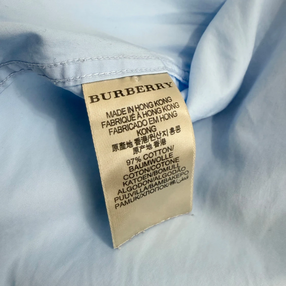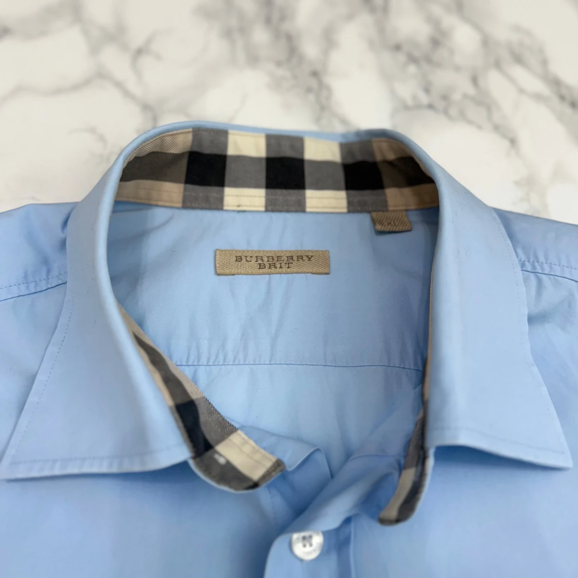 Ljusblå Burberry skjorta i storlek XL i mycket bra skick. Liten i storleken, passar snarare L. Skjortan är självklart äkta. Är du osäker på äkthet hänvisar jag gärna till bra källor/guider. Tveka inte på att höra av dig för fler frågor eller vid minsta fundering! Skick: 9/10