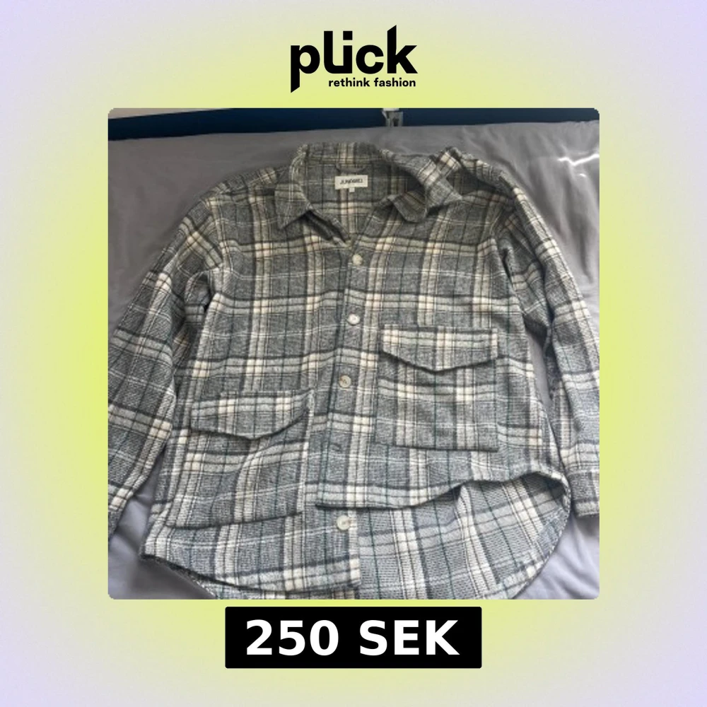 Säljer en grå och vit rutig overshirt från Junkyard i storlek L. Skjortan har stora bröstfickor med lock, knäppning framtill och klassisk krage. Perfekt lager-på-lager-plagg med mjukt material och avslappnad passform.