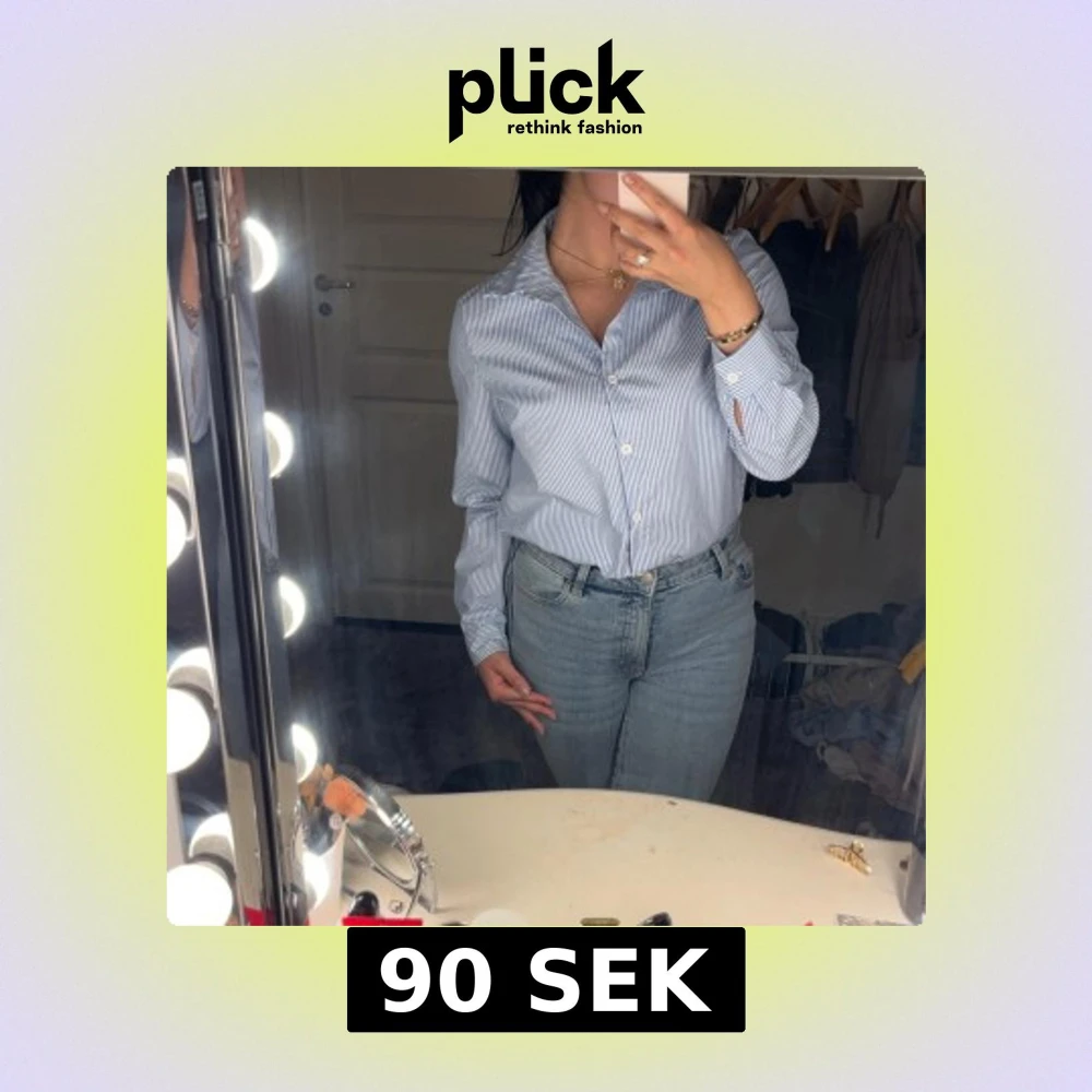 Snygg blåvit randig skjorta med klassisk krage och knäppning framtill. Skjortan har långa ärmar och är tillverkad i ett mjukt material. Perfekt att styla med jeans eller kjol för en clean look.