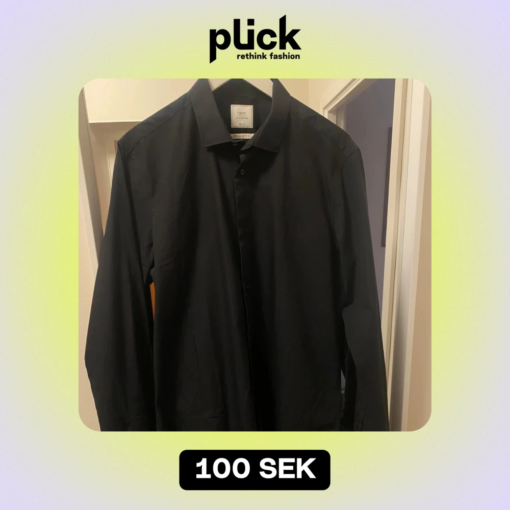 Snygg svart skjorta från Next Tailoring i storlek L. Skjortan har en klassisk krage och knappar framtill. Perfekt för en stilren look.
