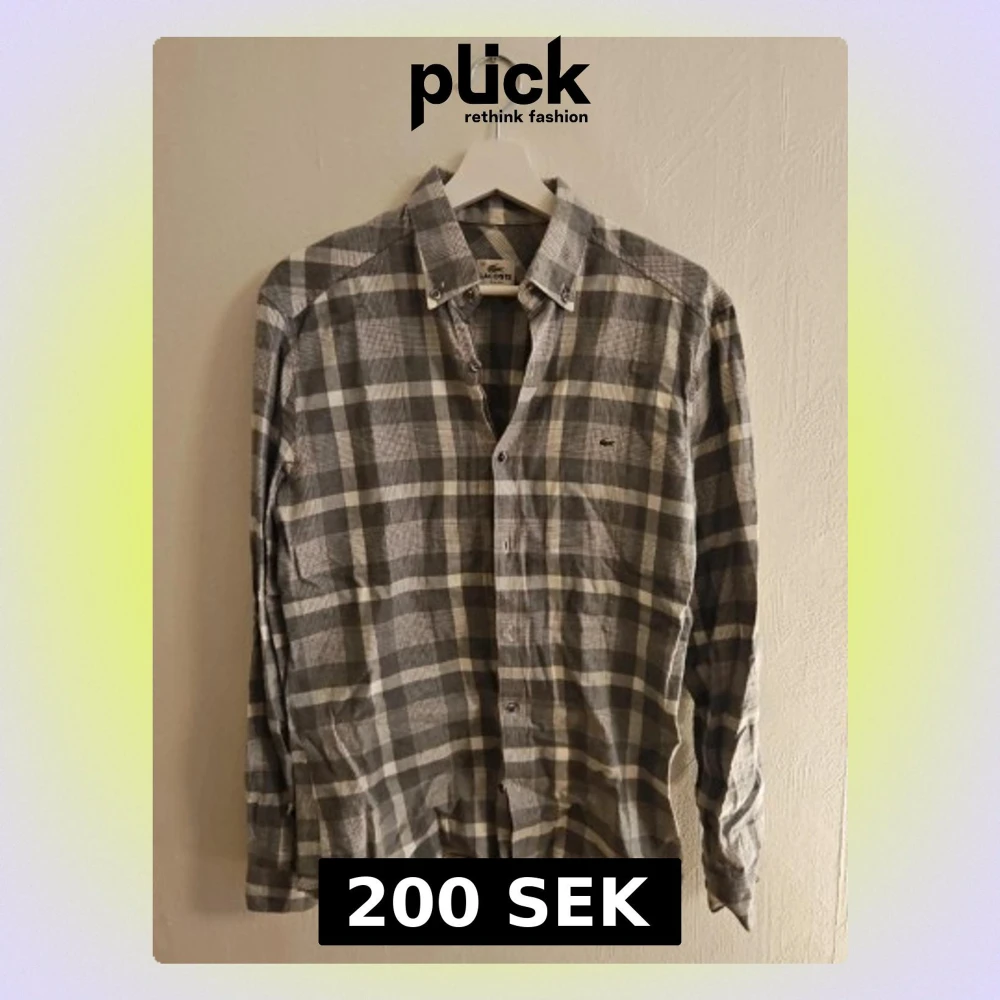 Klassisk grå och vit rutig skjorta från Lacoste med button-down krage och diskret logga på bröstet. Skjortan har långa ärmar och knäppning framtill. Perfekt för en avslappnad men ändå stilren look.