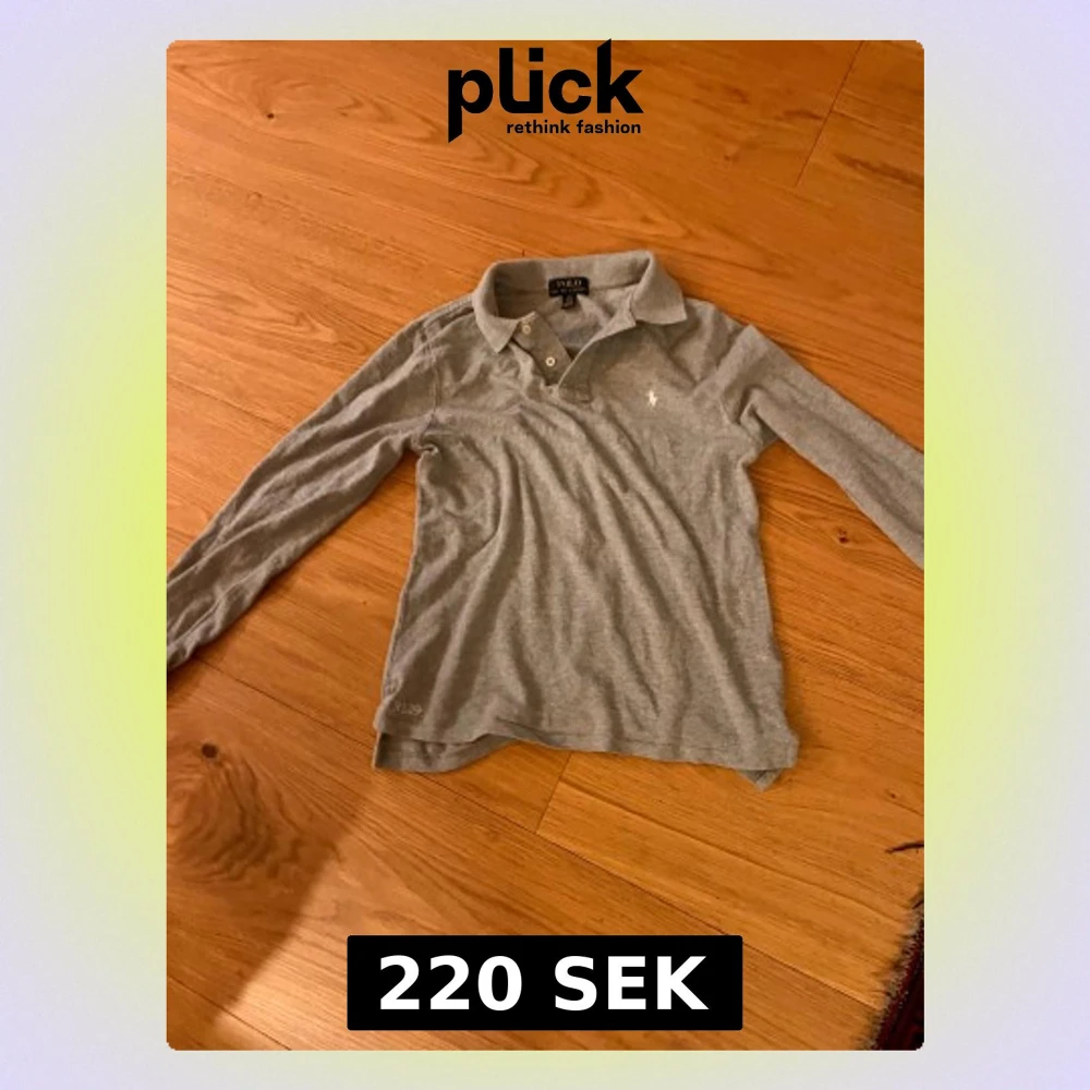 Grå långärmad piké ifrån polo Ralph lauren storleken är 10-12