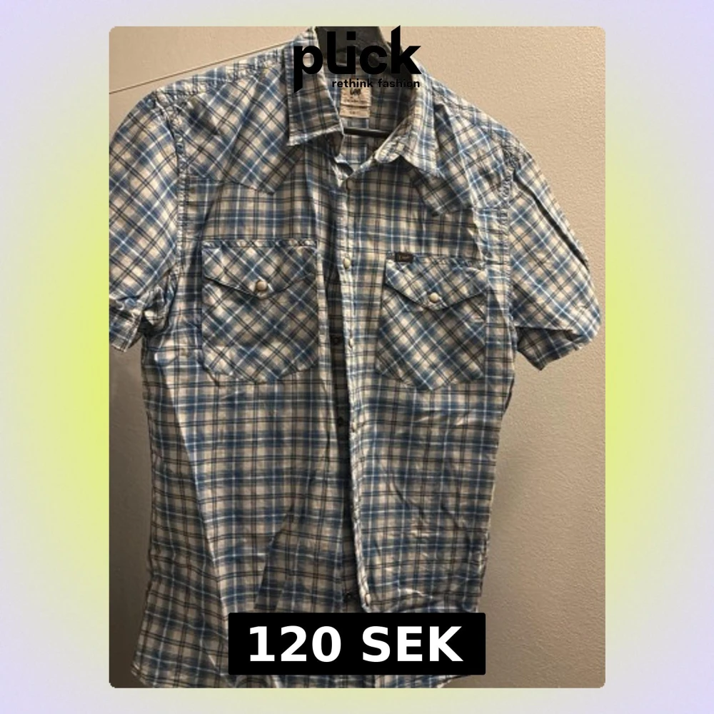 Kortärmad skjorta från Lee i blåvitt rutigt mönster. Klassisk krage, två bröstfickor med lock och tryckknappar.