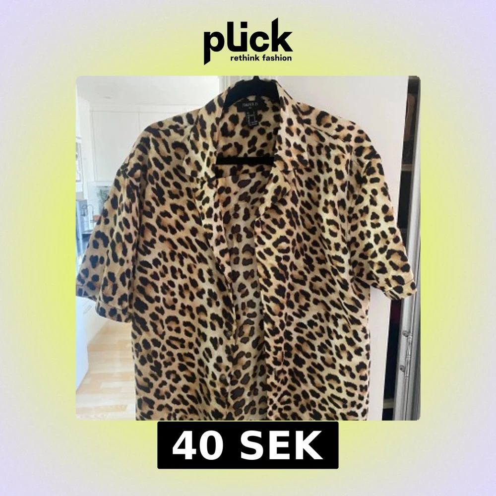 Säljer en kortärmad skjorta från Forever 21 med leopardmönster i beige, brunt och svart. Skjortan har klassisk krage och knäppning framtill. Perfekt för dig som vill sticka ut med en djärv stil.