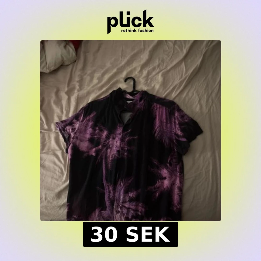 Säljer en kortärmad skjorta från Avenue Tropicale i storlek medium. Skjortan har ett tropiskt mönster i lila och svart med palmer, knäppning framtill och avslappnad passform. Perfekt för dig som vill sticka ut med en cool vibe.
