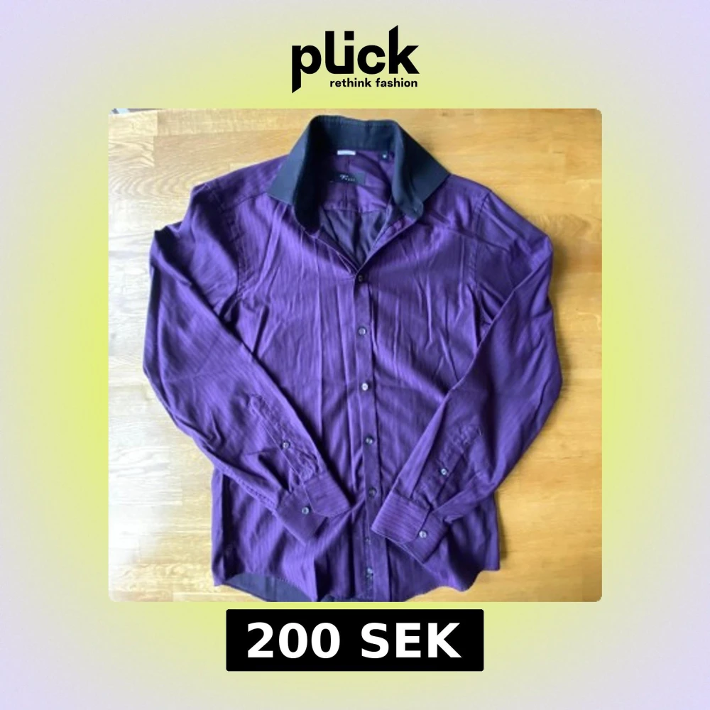 Snygg lila skjorta från Venti med diskreta ränder och svart kontrastkrage. Skjortan har lång ärm, klassisk krage och knappar hela vägen framtill. Perfekt för dig som vill sticka ut med färg och stil. Passar dig som gillar en lite mer dressad look.