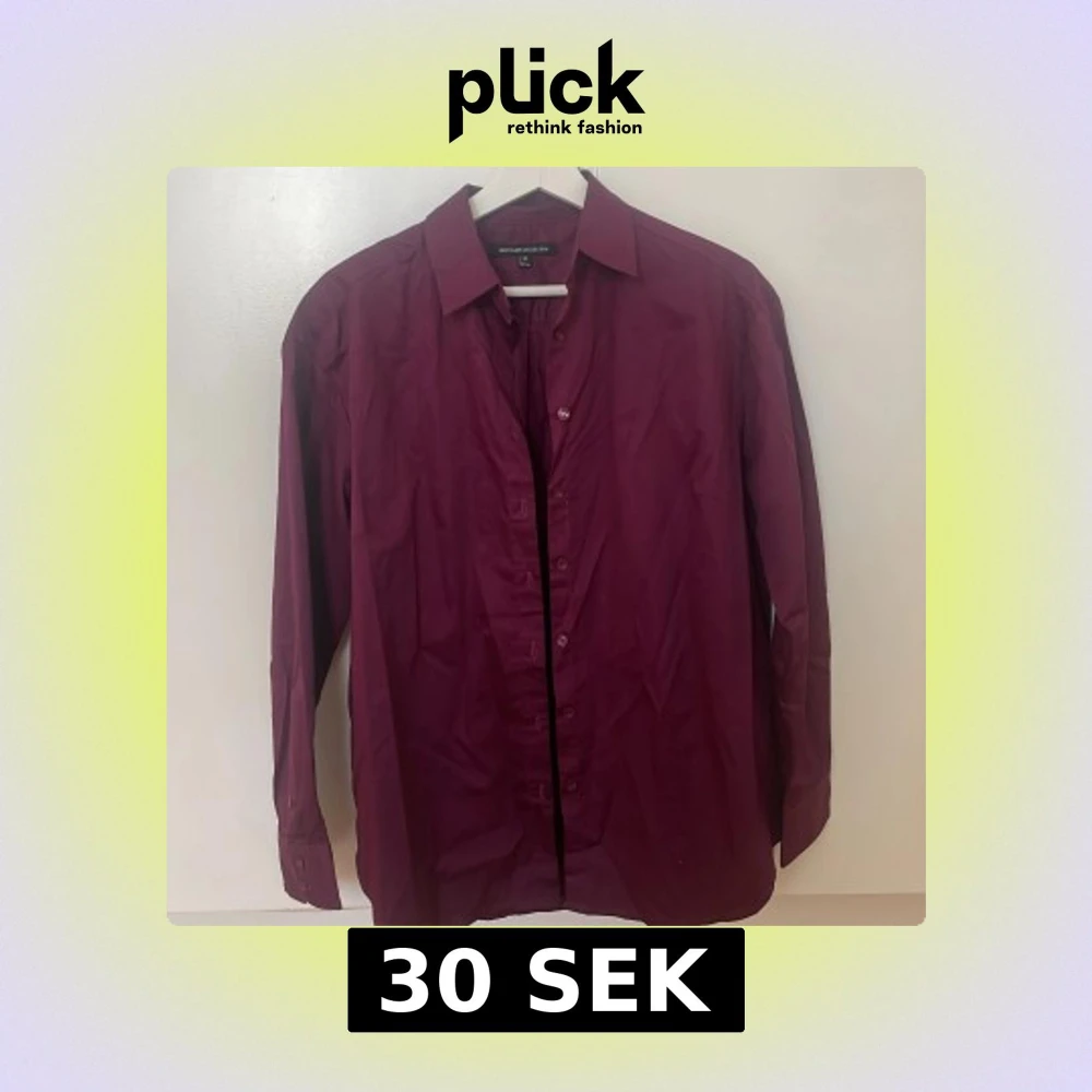 Snygg lila skjorta från First Class Collection i storlek XS. Skjortan har långa ärmar och knappar framtill. Perfekt för en stilren look. Kan stajlas med t.ex en vit T-shirt under och ett par svarta kostymbyxor. Fick sy på en knapp från skjortan då den hade gått av. Hade enadast vit tråd men det är bara att byta tråd om man tycker att det är snyggare.