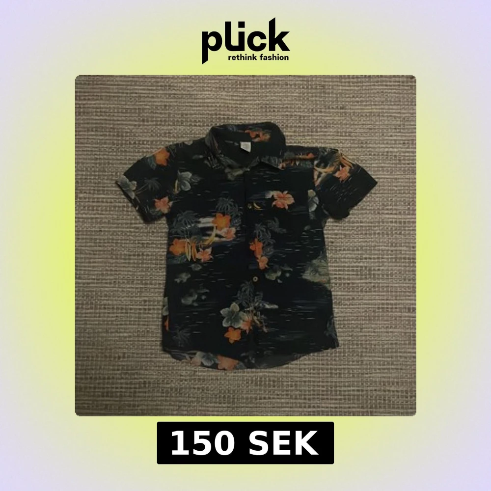 Säljer en cool kortärmad skjorta med tropiskt mönster i orange, grön och svart. Perfekt för sommarens äventyr. Skjortan har knappar framtill och en bröstficka. Original priset är 300