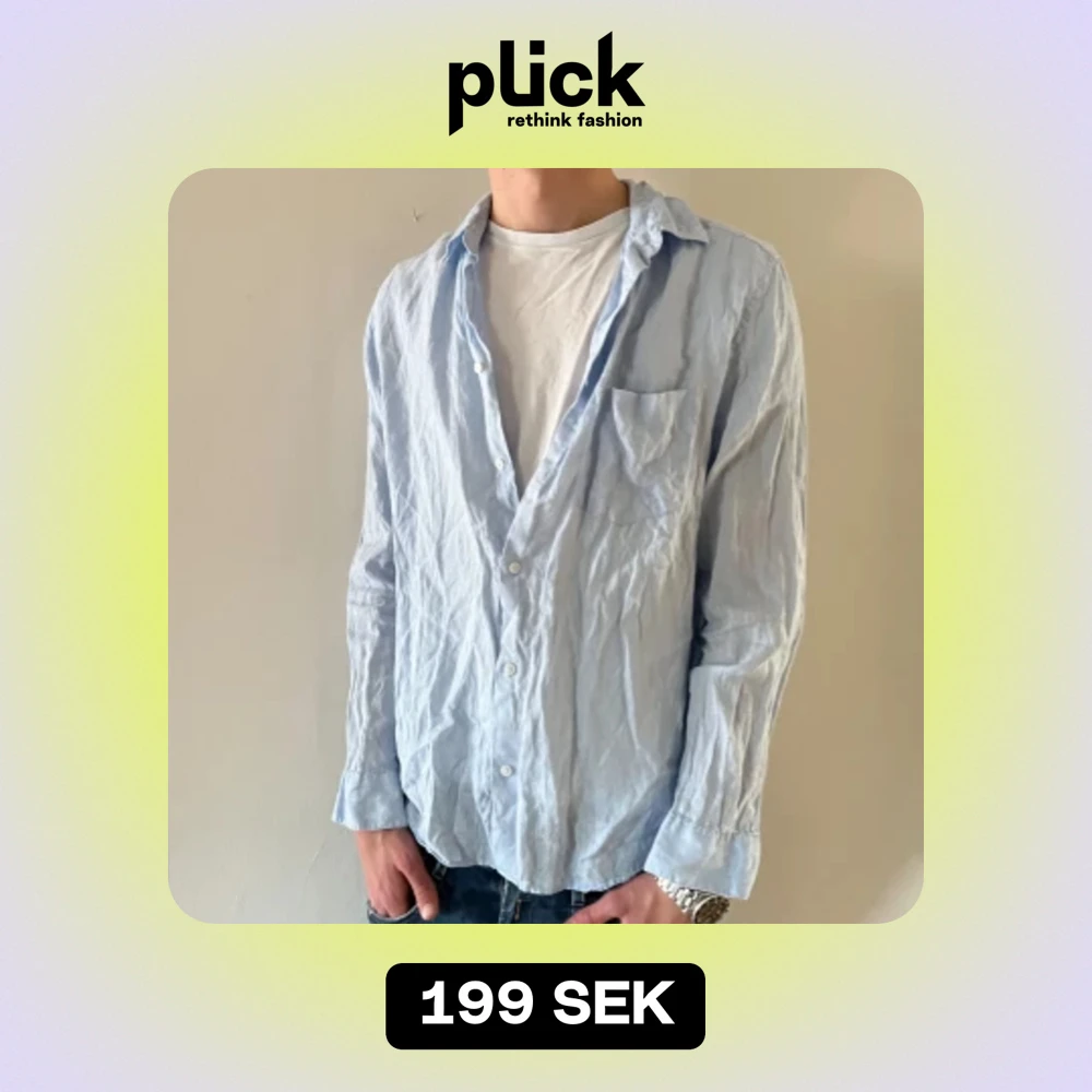 Hejđ€ sĂ€ljer nu en blĂ„ linne skjorta frĂ„n H&M! Storlek M. Skick 9/10â hör av dig vid frĂ„gor!