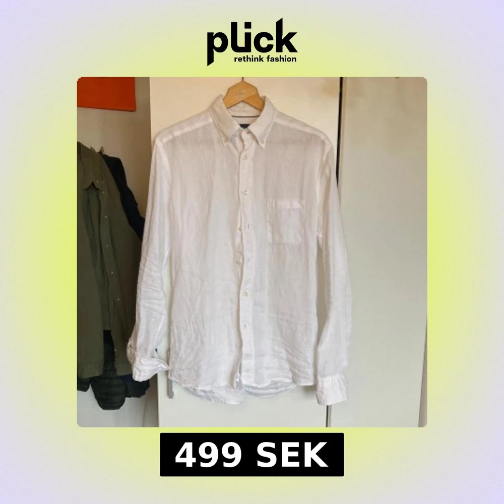 Klassisk vit skjorta i linne från Eton med lång ärm och bröstficka. Storlek S men skulle säga den passar M. Utmärkt skick