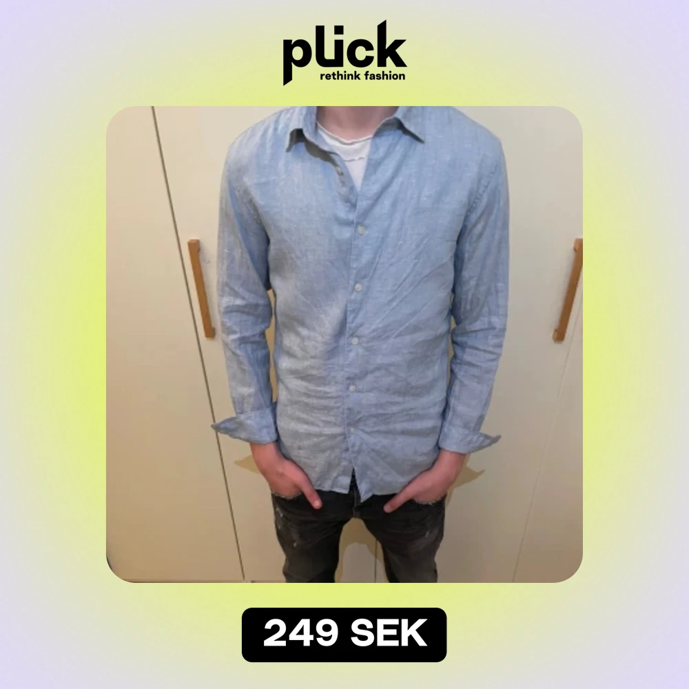 En fet linneskjorta köpt på uniqlo i london! Väldigt bra skick 9/10. den passar perfekt till sig som är runt 185 cm!