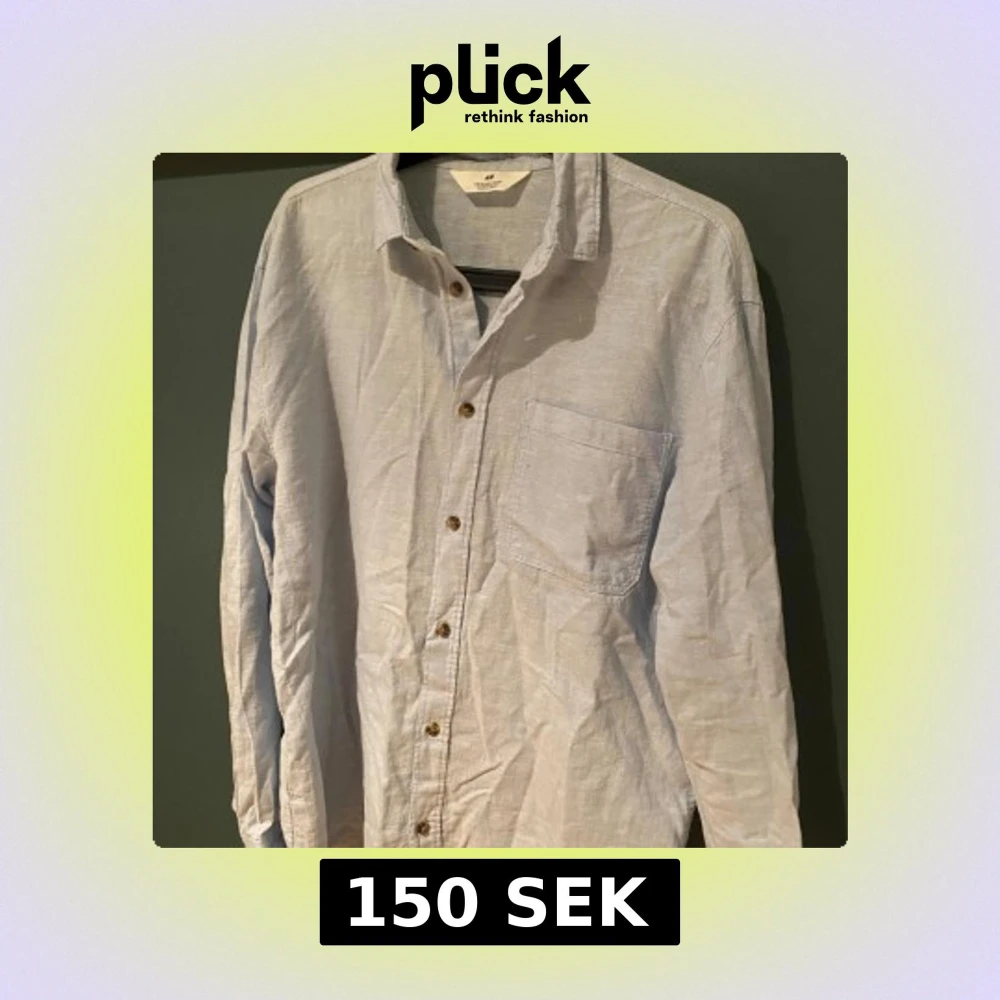 Snygg ljusblå skjorta från H&M i luftig linneblandning. Klassisk krage, bröstficka och bruna knappar framtill. Perfekt för en chill och stilren look, passar lika bra till jeans som till shorts. Långärmad och med relaxed fit.