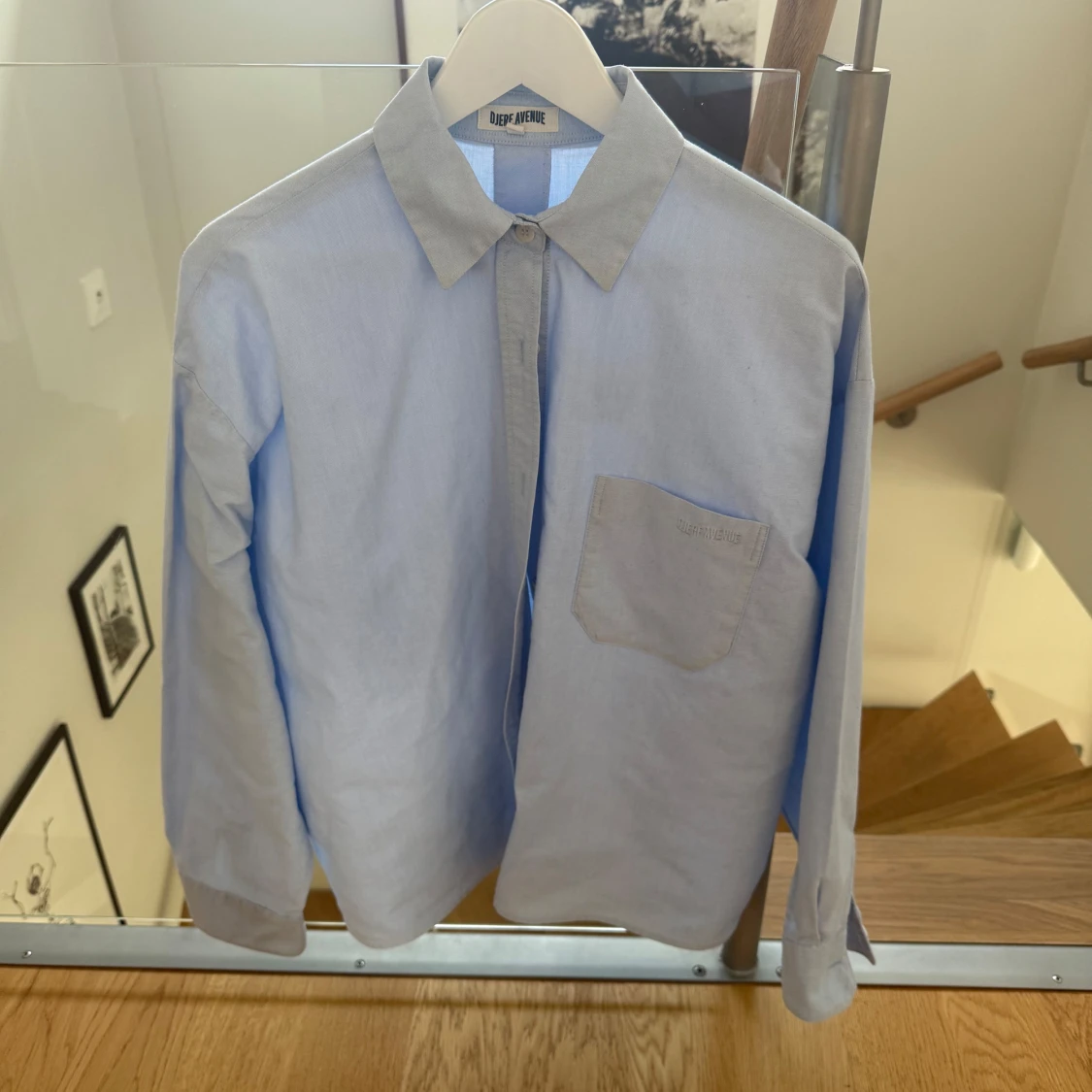 Säljer en stilren ljusblå skjorta från Djerf Avenue i storlek M. Skjortan är i mycket bra skick🫶🏼