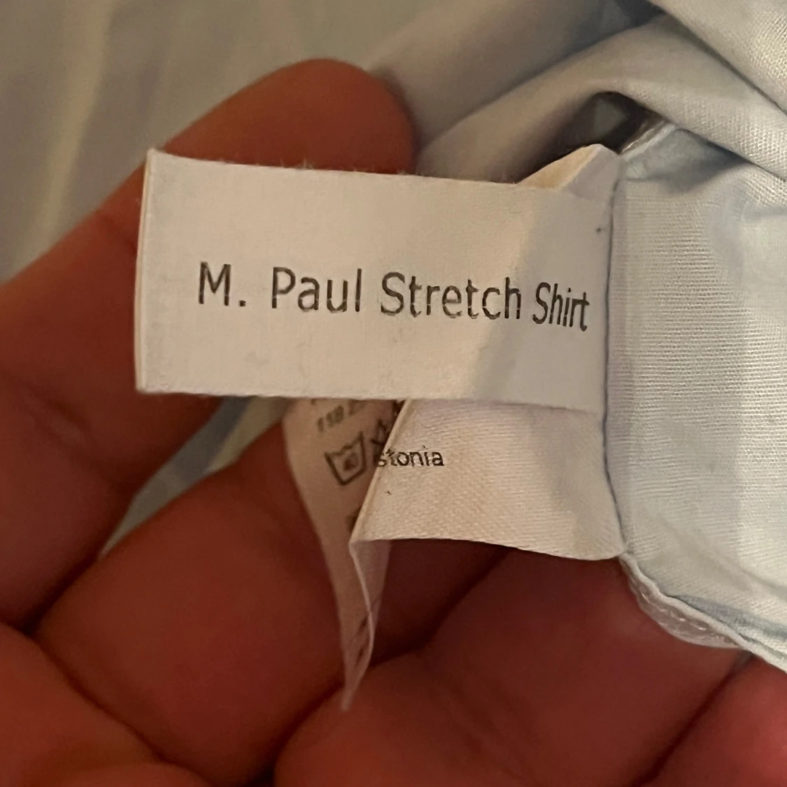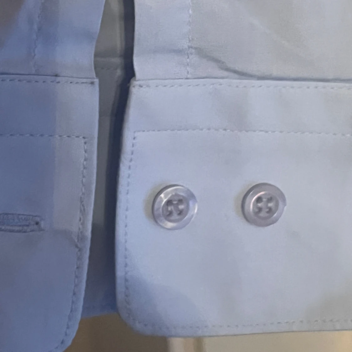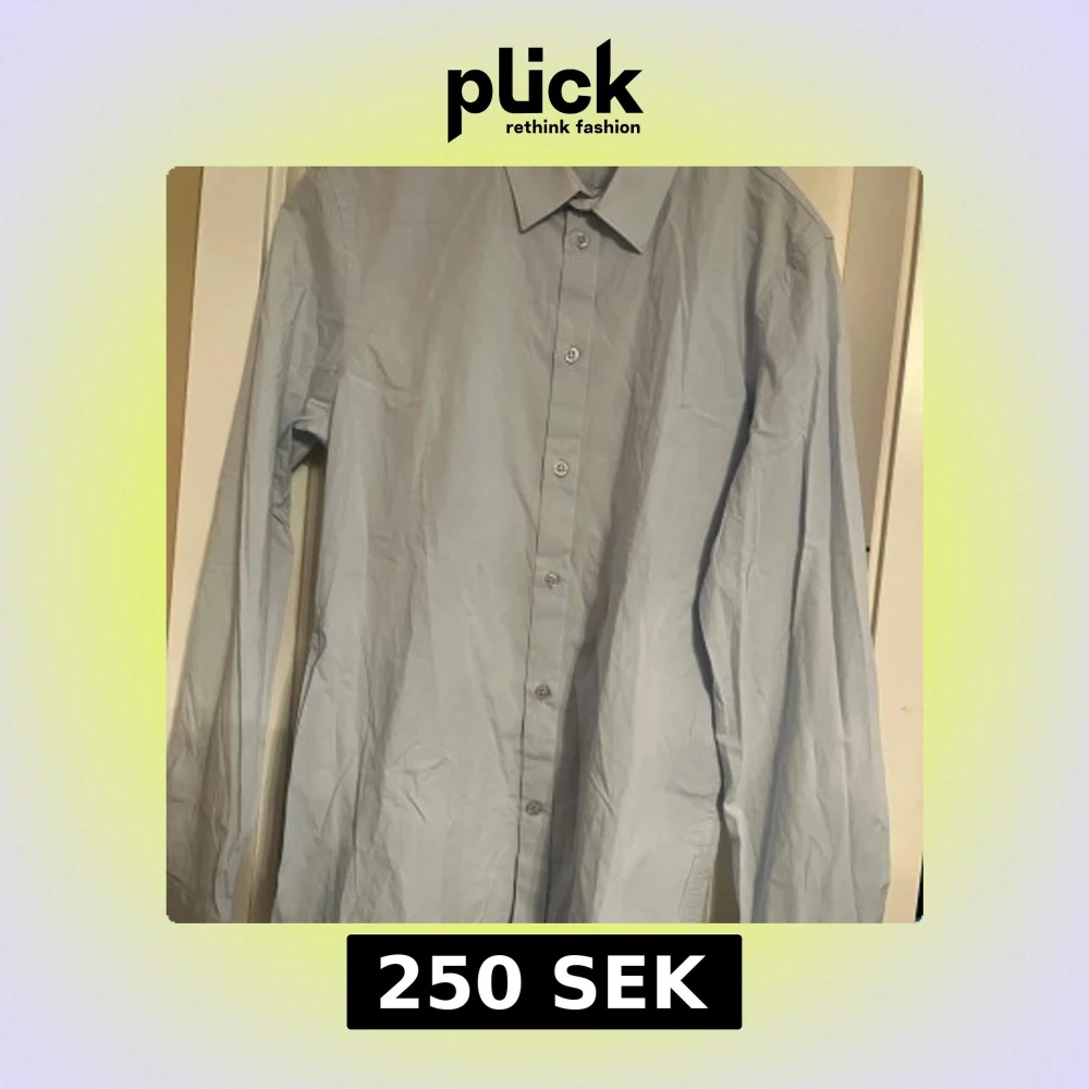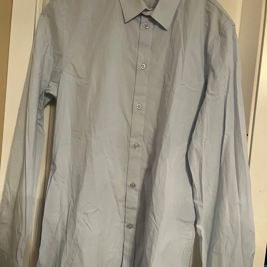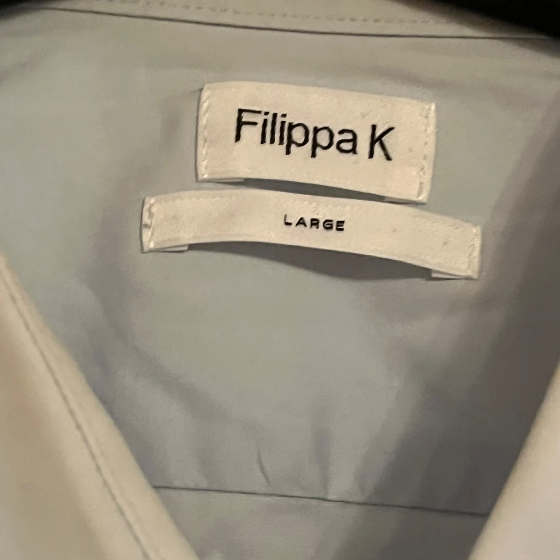 Snygg ljusblå skjorta från Filippa K i storlek L. Skjortan har långa ärmar och knappar framtill samt vid ärmsluten. Perfekt för en stilren look.