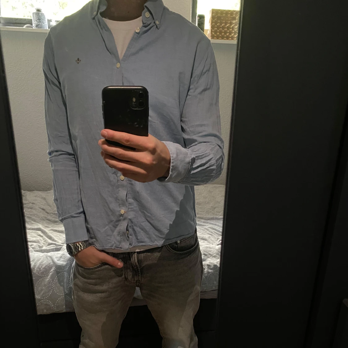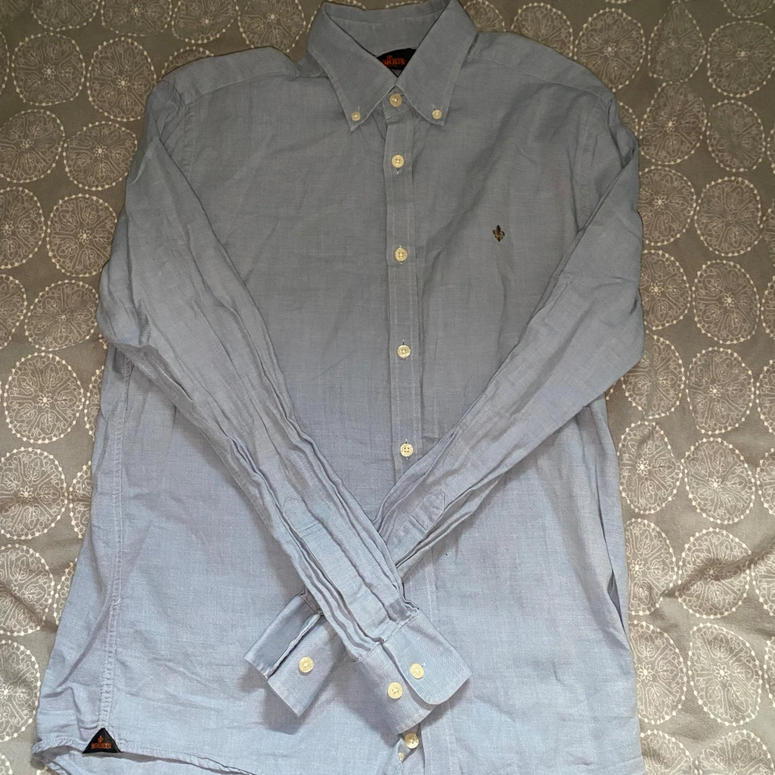 Ljusblå skjorta från Morris i storlek S. Fint skick till ett bra pris. Nypris: 1399kr Mitt pris: 249kr. Vid frågor eller funderingar, tveka inte att höra av dig.