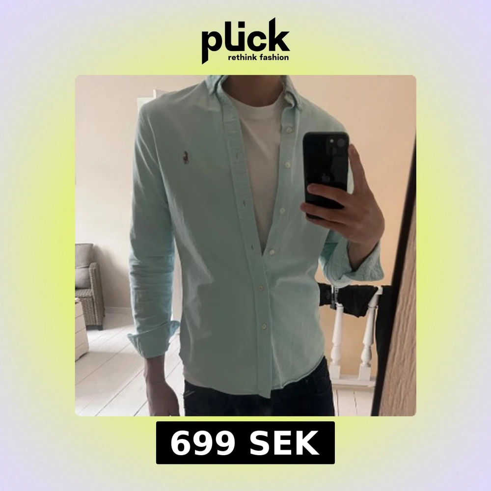 Säljer en ljusblå skjorta från Polo Ralph Lauren i slim fit med klassisk button-down krage. Väldigt bra skick inga defekter.