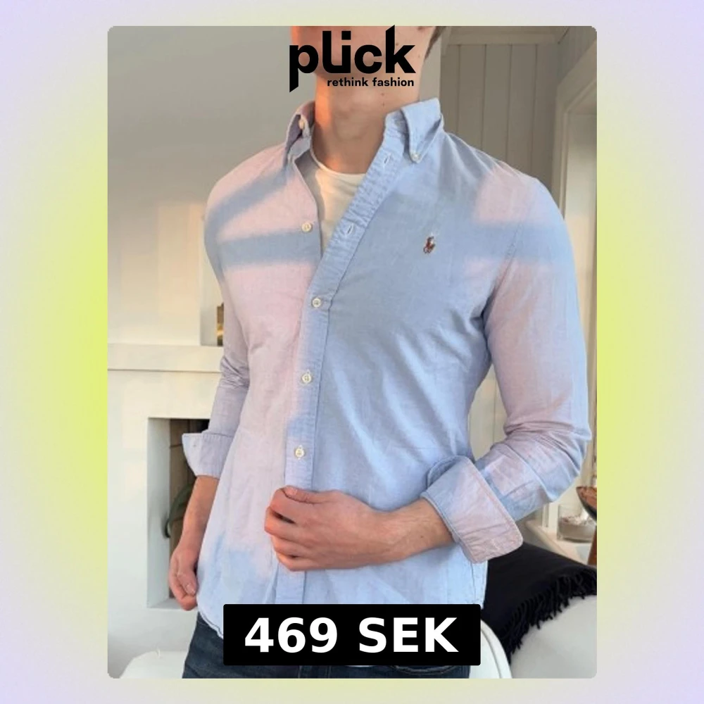 Säljer en ljusblå skjorta från Polo Ralph Lauren i slim fit. Skjortan har klassisk button-down krage, broderad logga på bröstet och vita knappar. Tillverkad i bomull och har långa ärmar. Perfekt för en clean och stilren look.