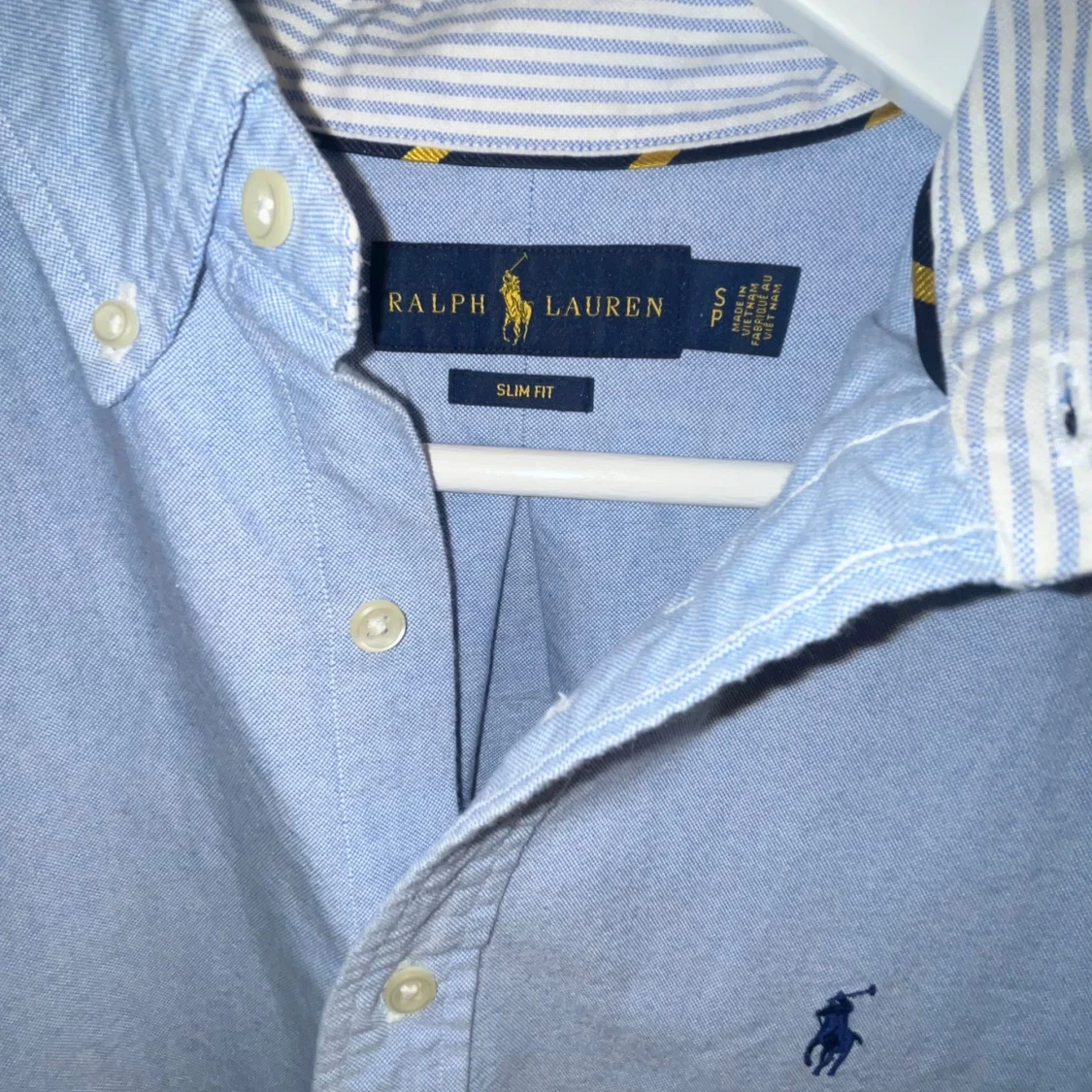 Still ren ljusblå skjorta från Ralph Lauren i slim fit med klassisk krage och knappar framtill. Skjortan har lång ärm och ikoniska Polo-loggan broderad på bröstet. Tillverkad i mjuk bomull och har randigt mönster på insidan av kragen för extra detalj. PRIS KAN DISKUTERAS